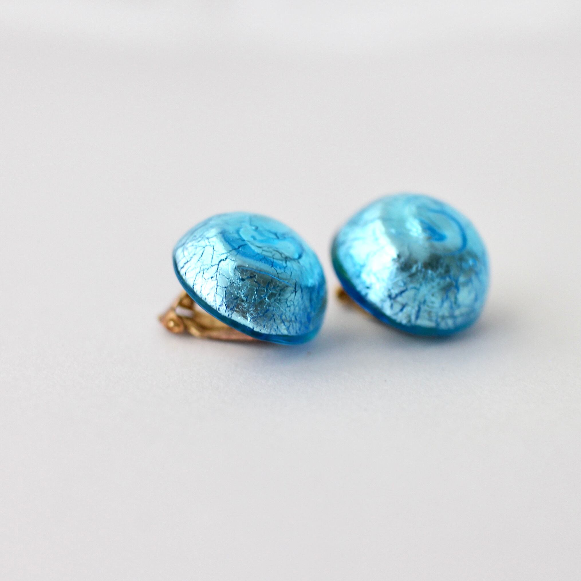 ライトブルーカボション*フォイルドガラス*ヴィンテージイヤリング