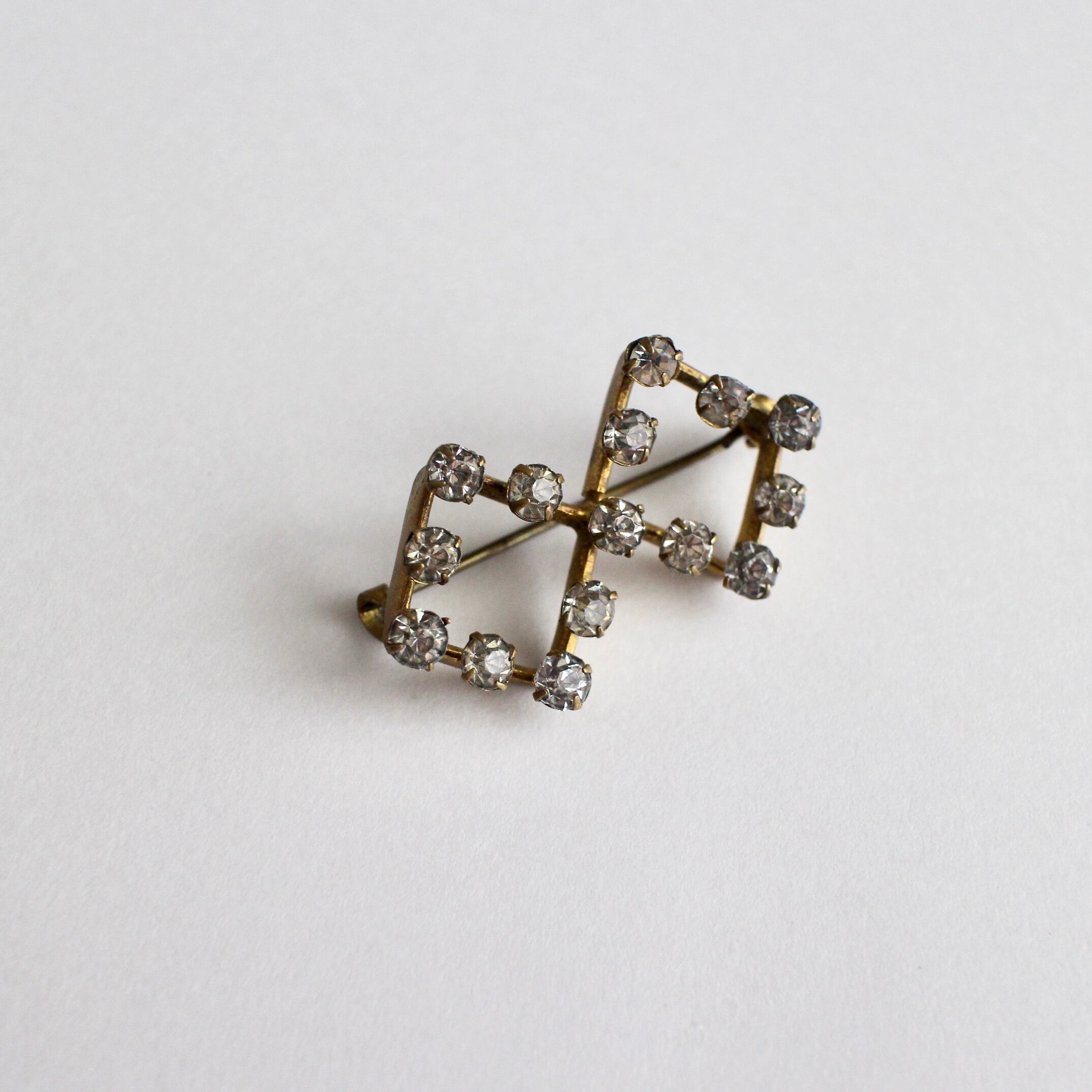 華奢なスクエアが二つ並んだアンティークブローチ。