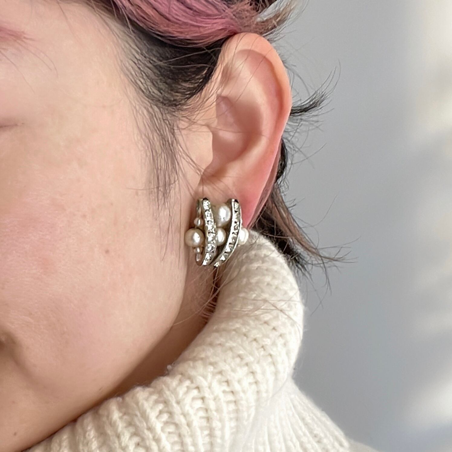 パール×クリア*スノービジュー*ヴィンテージイヤリング