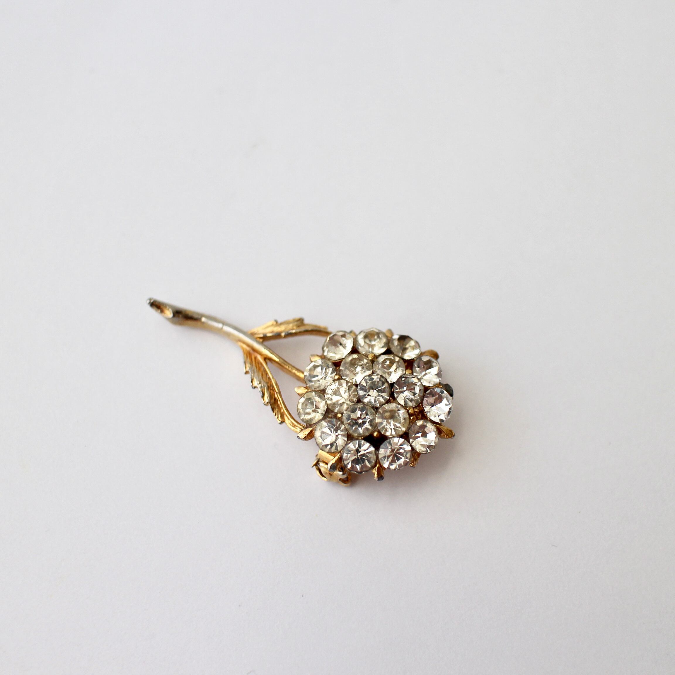 クリアビジューフラワー*ゴールドリーフ*ヴィンテージブローチ