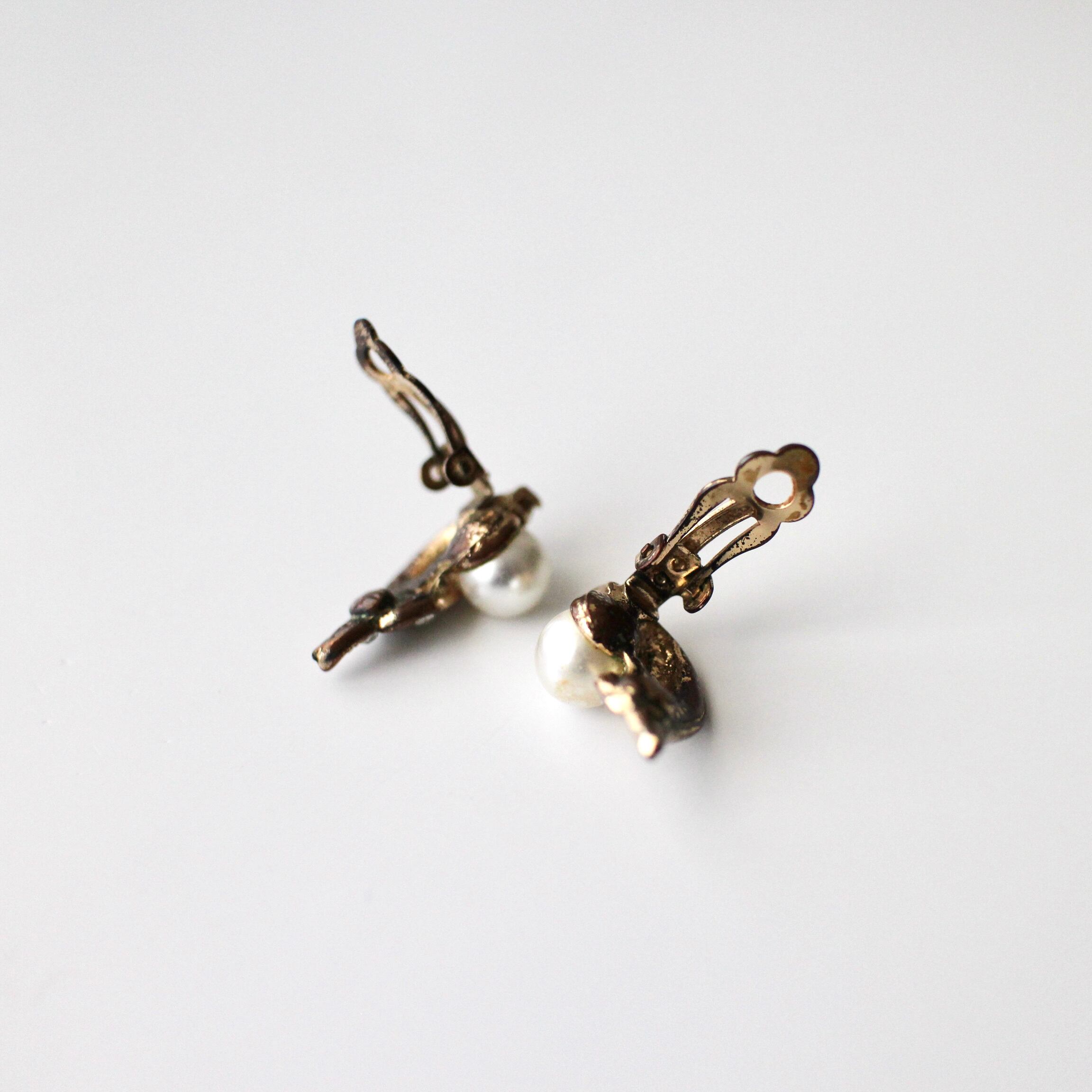 クリアフェザー*ラウンドパール*ヴィンテージイヤリング