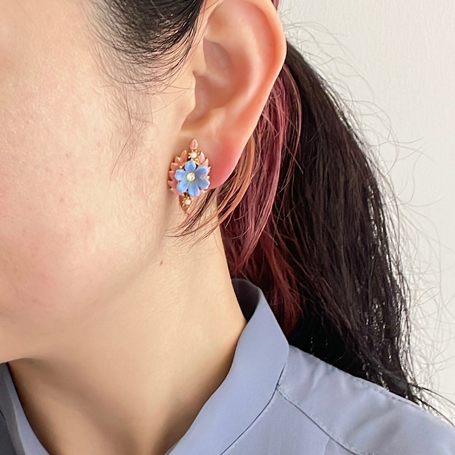 ピンク×ブルー*プチフラワー*ヴィンテージイヤリング
