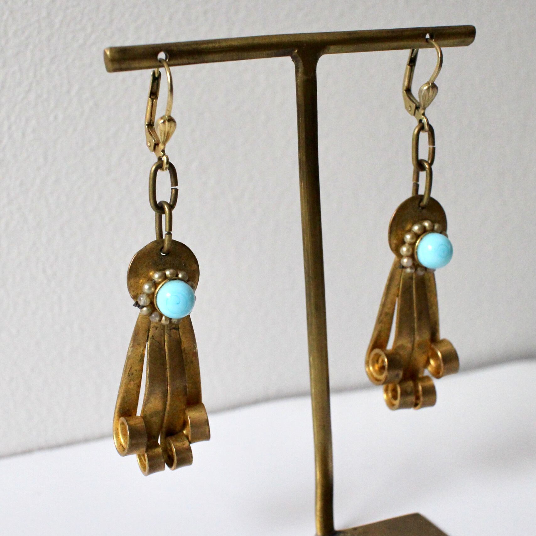デザインゴールドメタル*ターコイズガラス*フランスヴィンテージ*ピアス