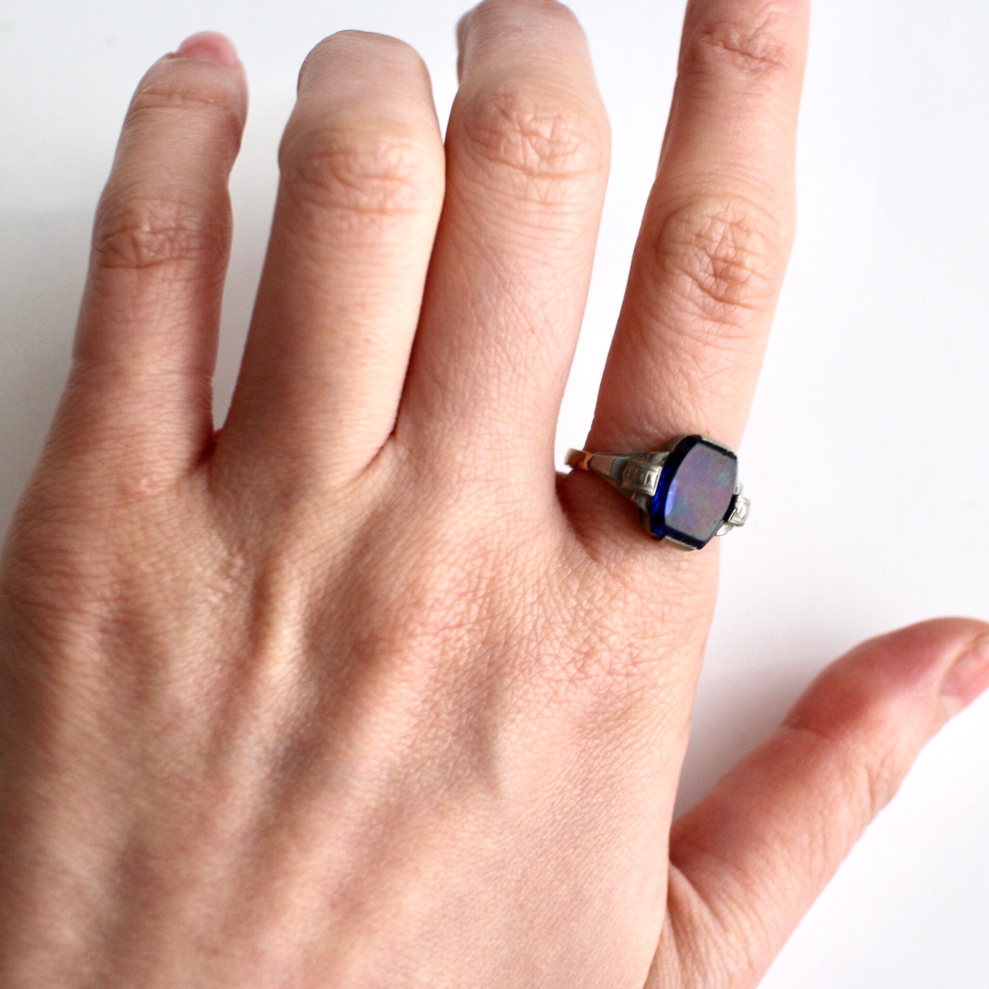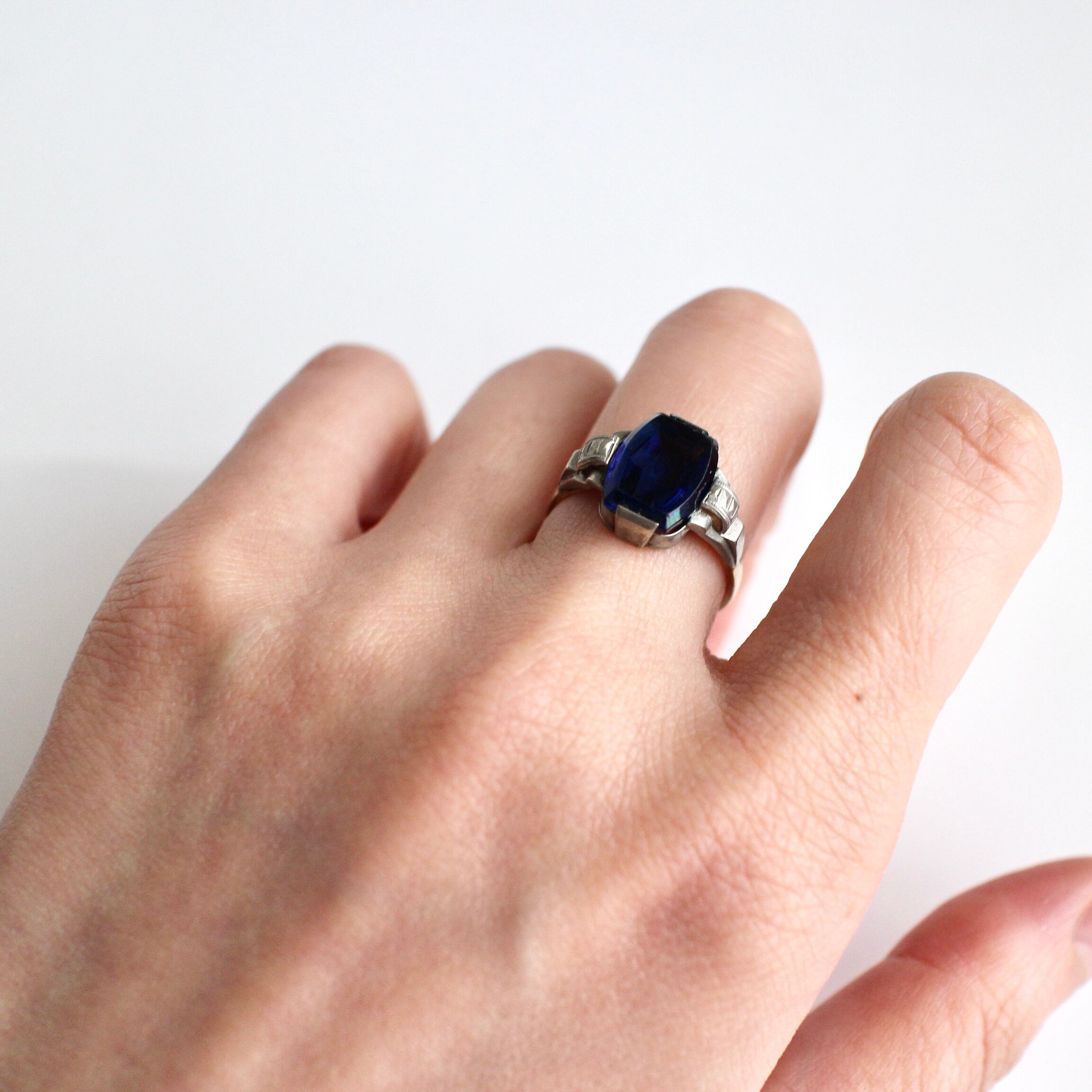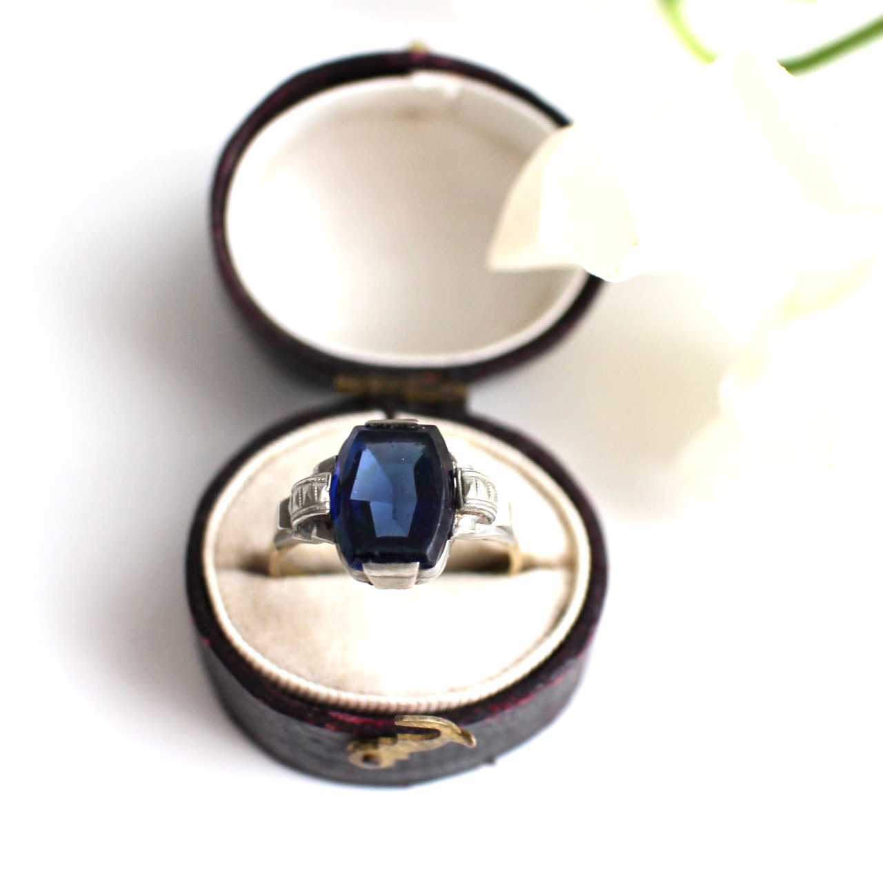 Art Deco*ティープブルービジュー*フランスヴィンテージリング