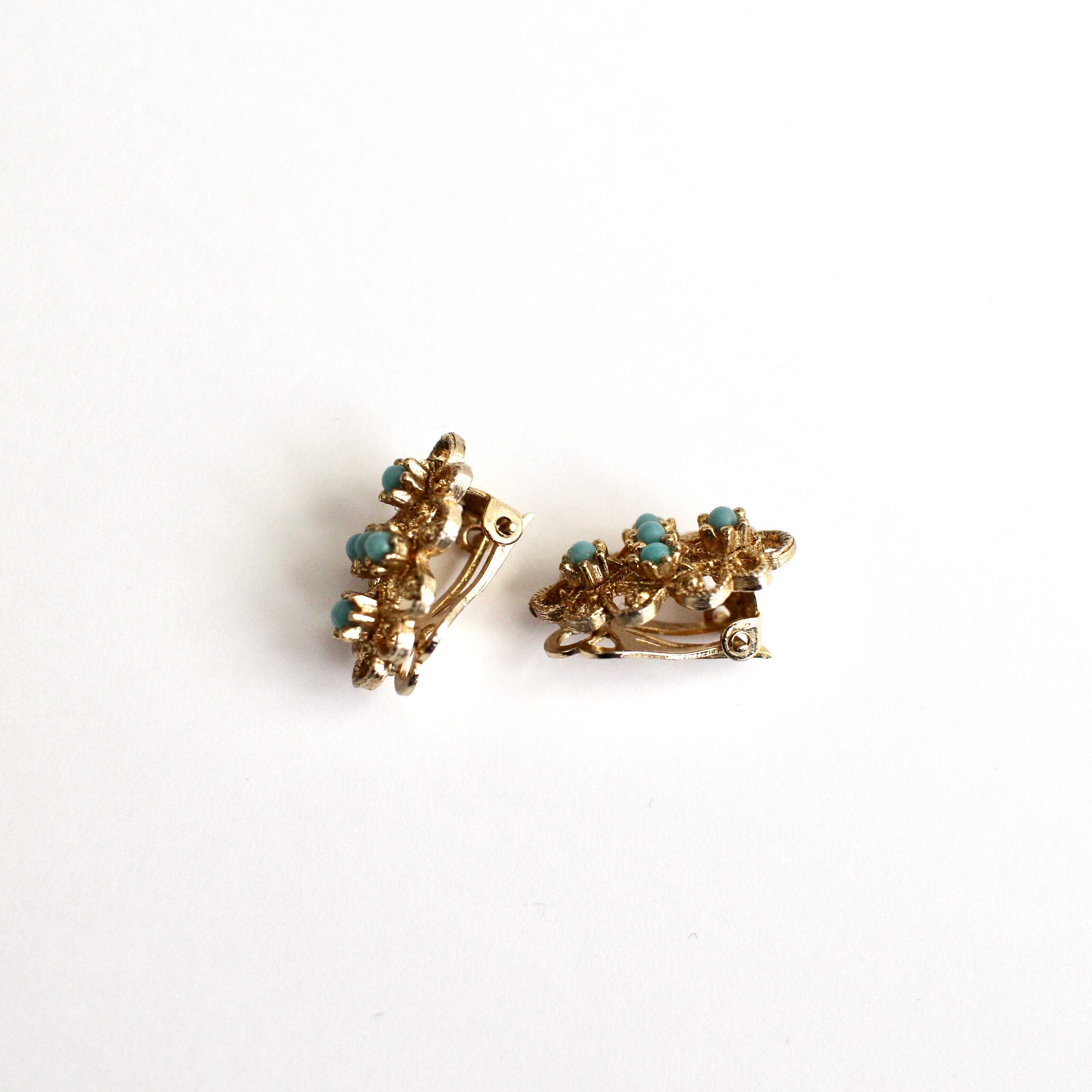 オープンメタルワーク*ターコイズガラス*華奢ヴィンテージイヤリング