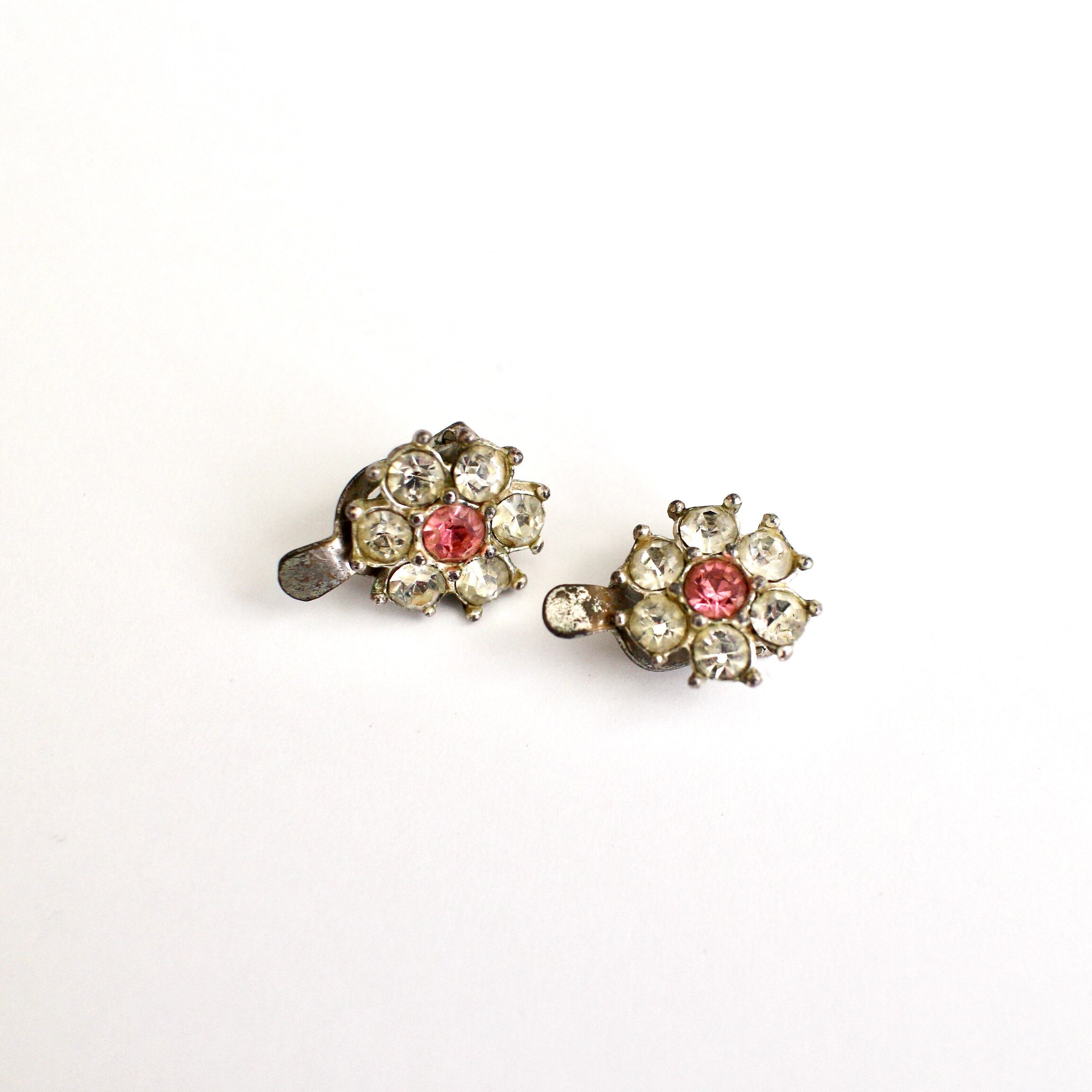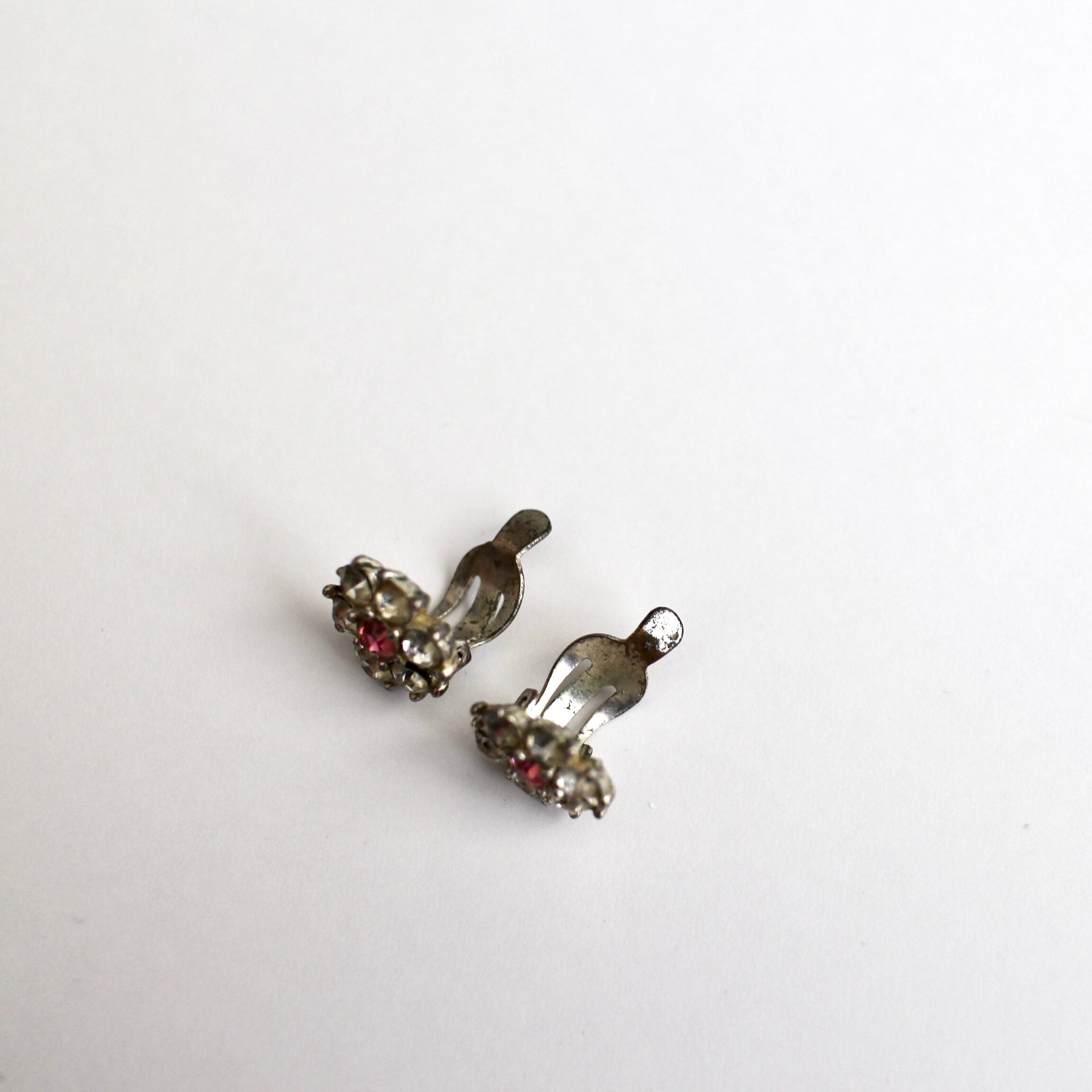 クリア×ピンク*プチフラワー*ヴィンテージイヤリング