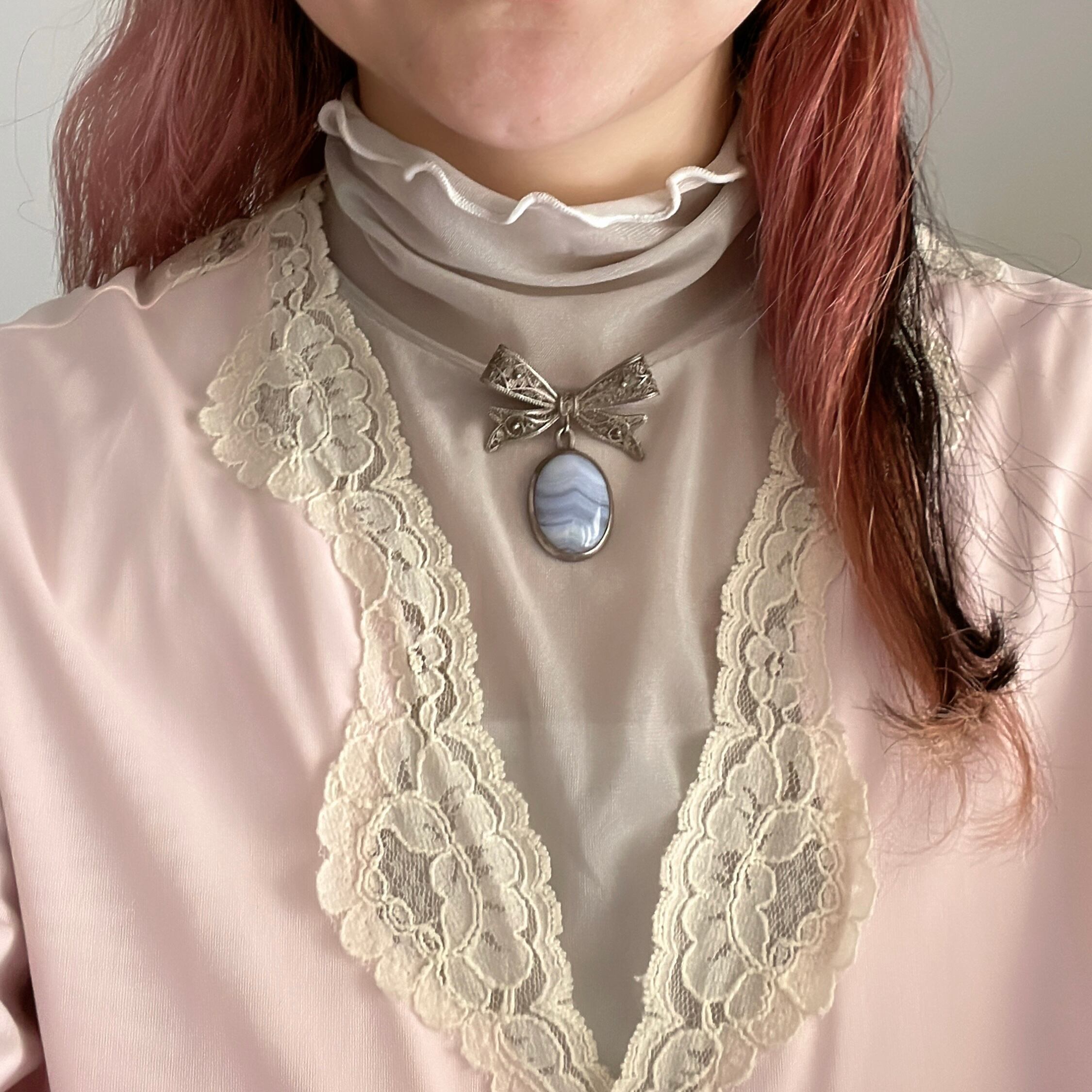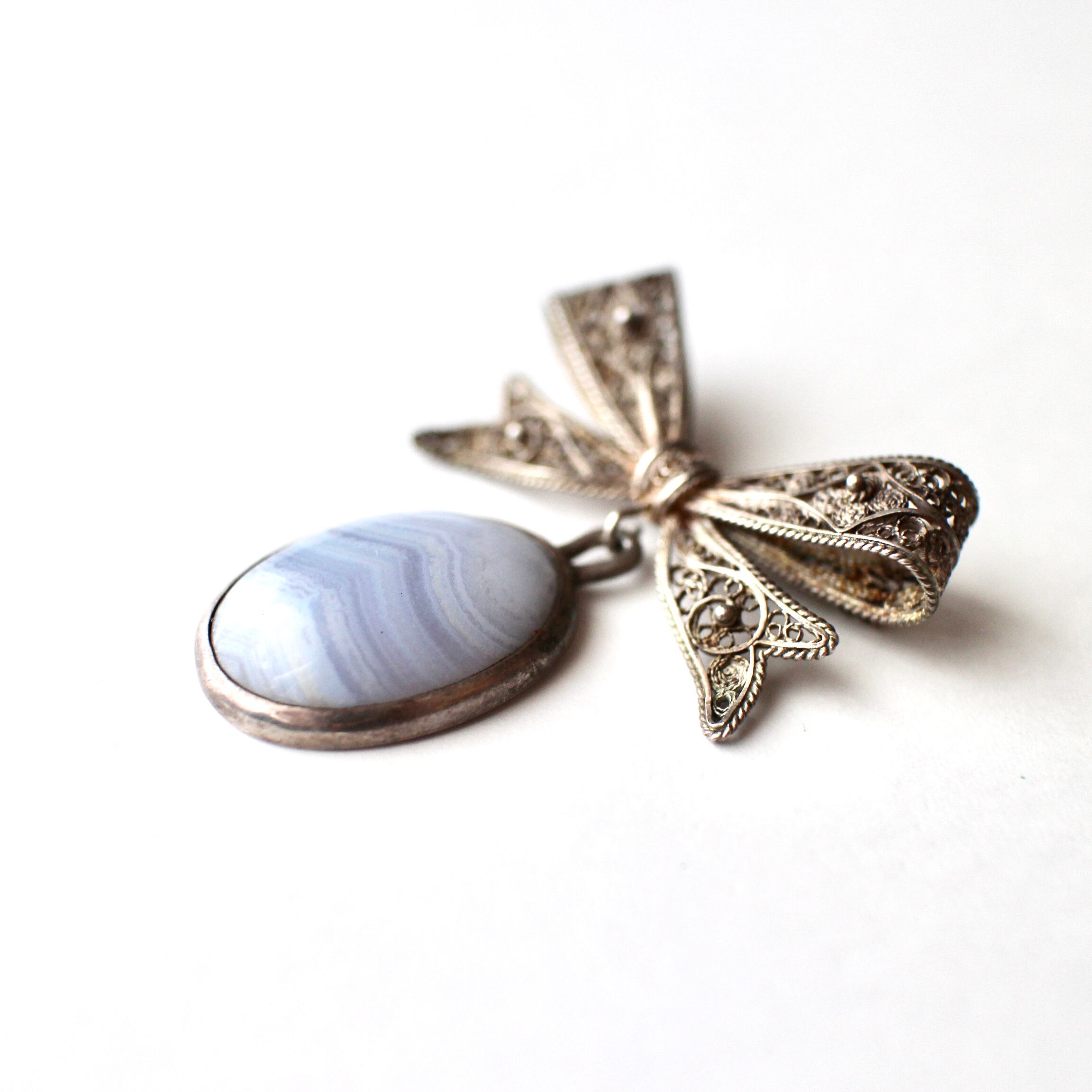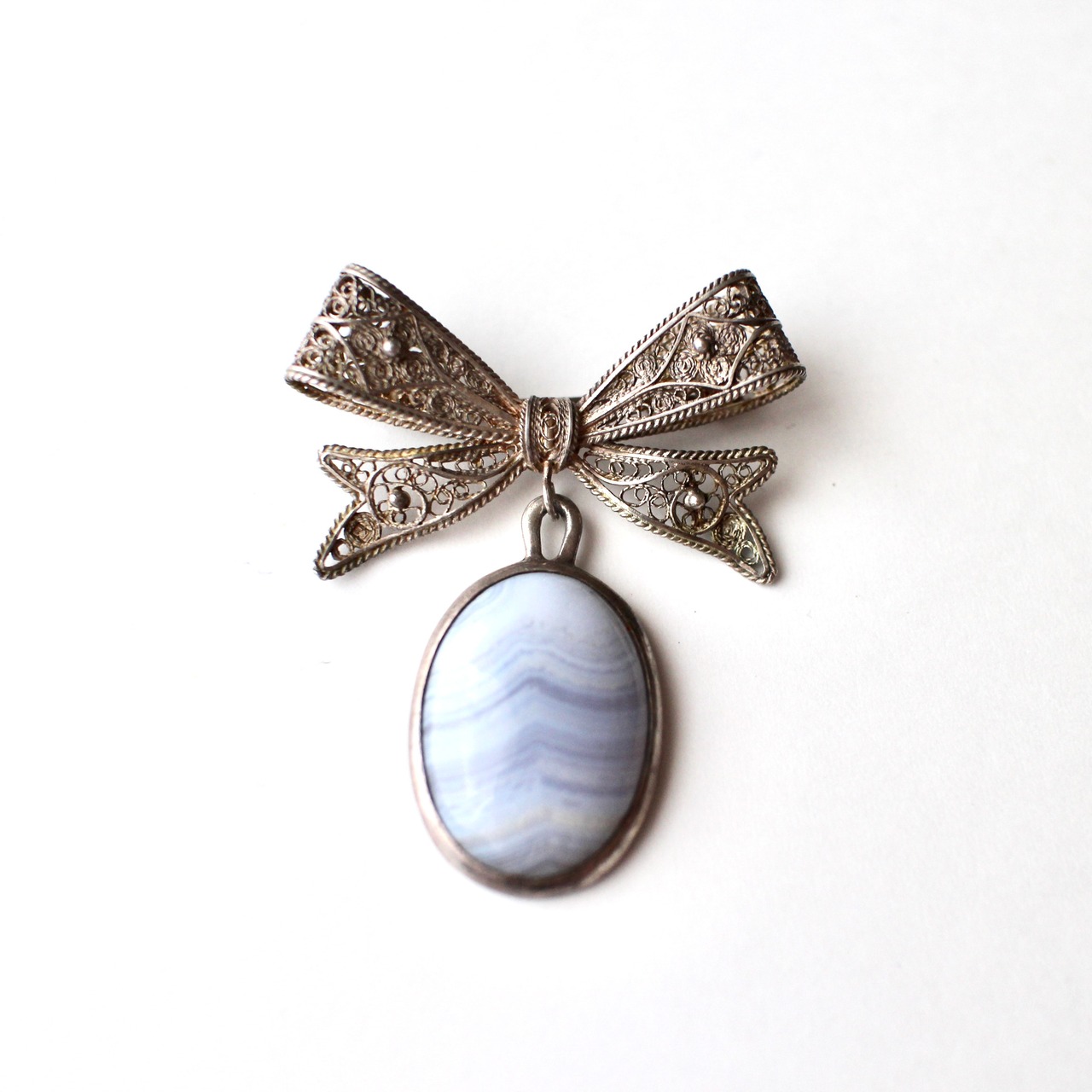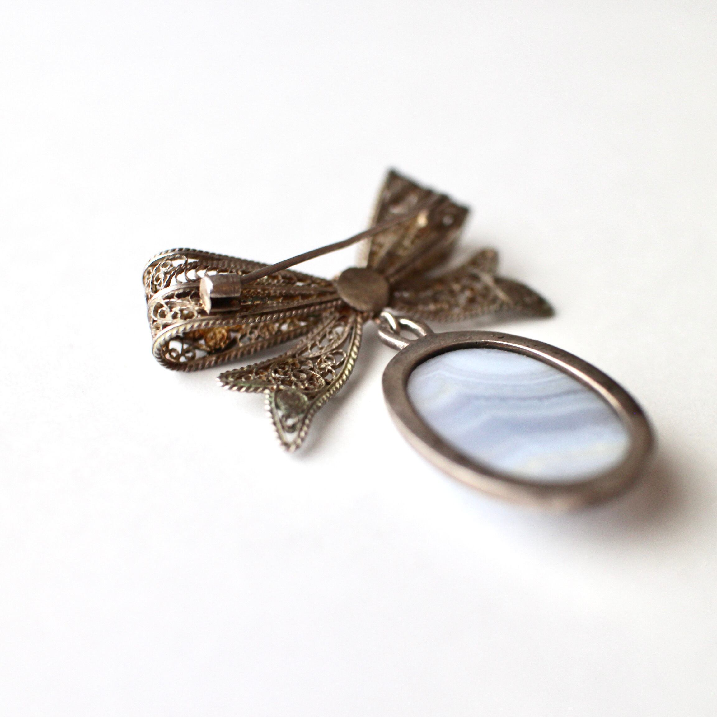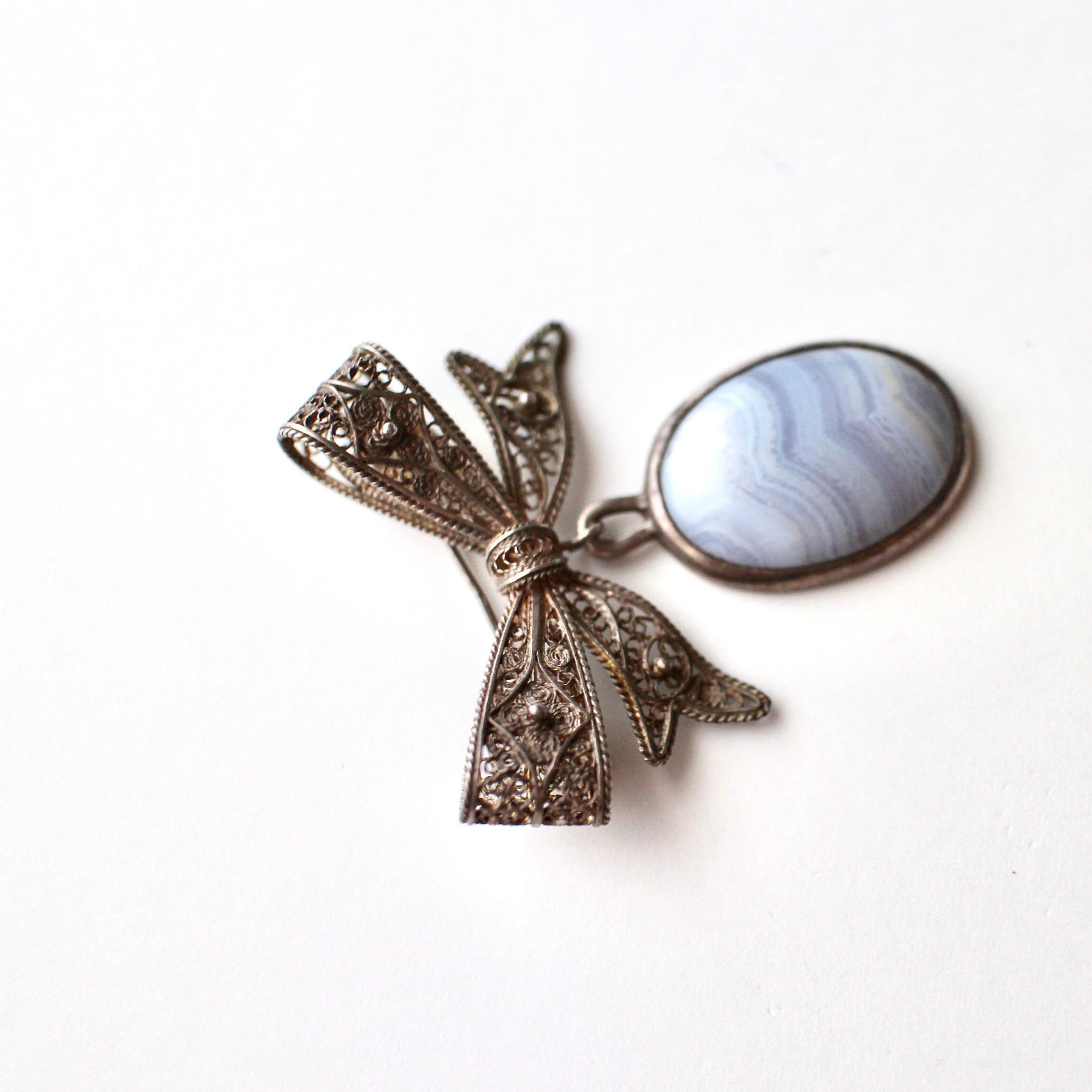 シルバーフィリグリー*リボンモチーフ*オーバルアゲート*ヴィンテージブローチ