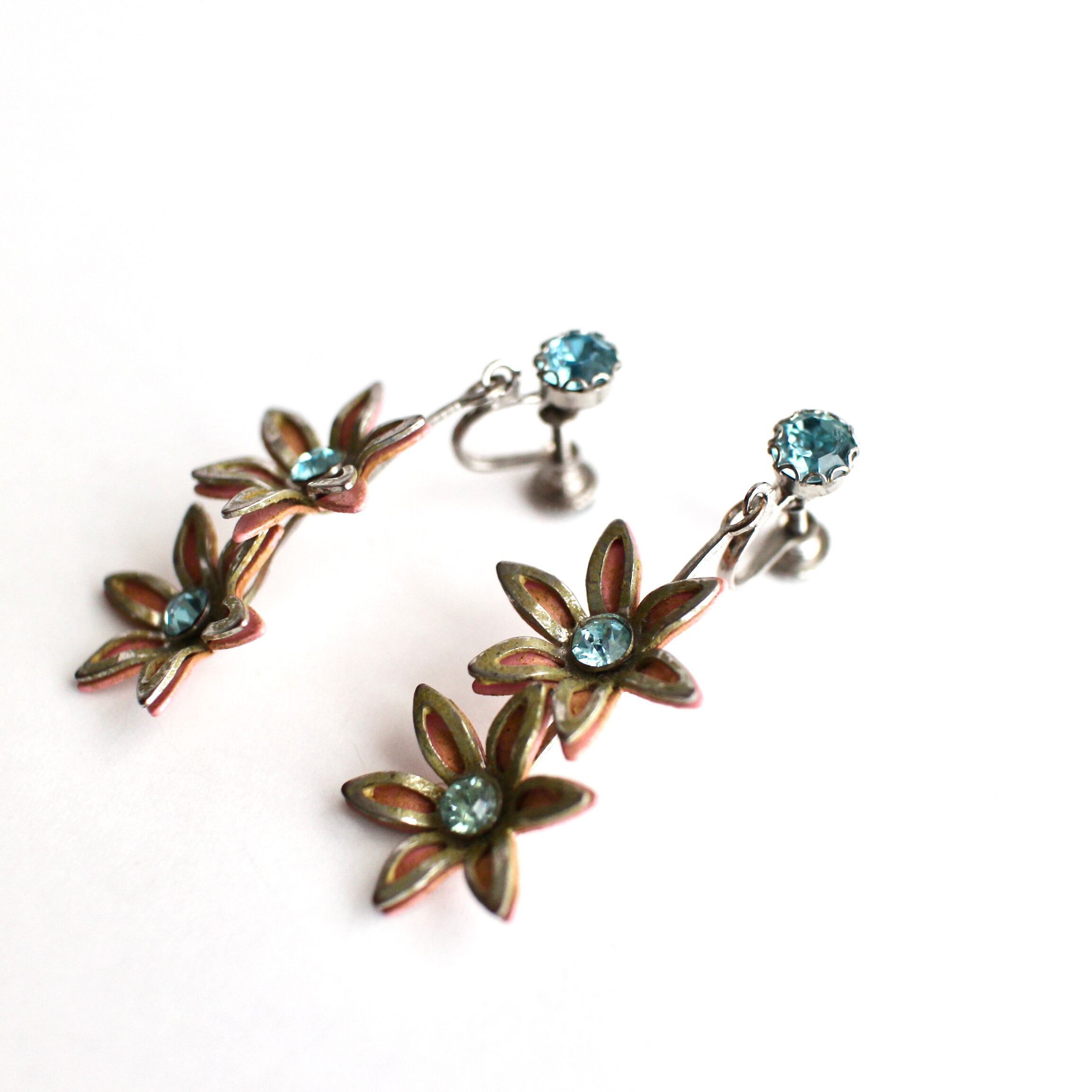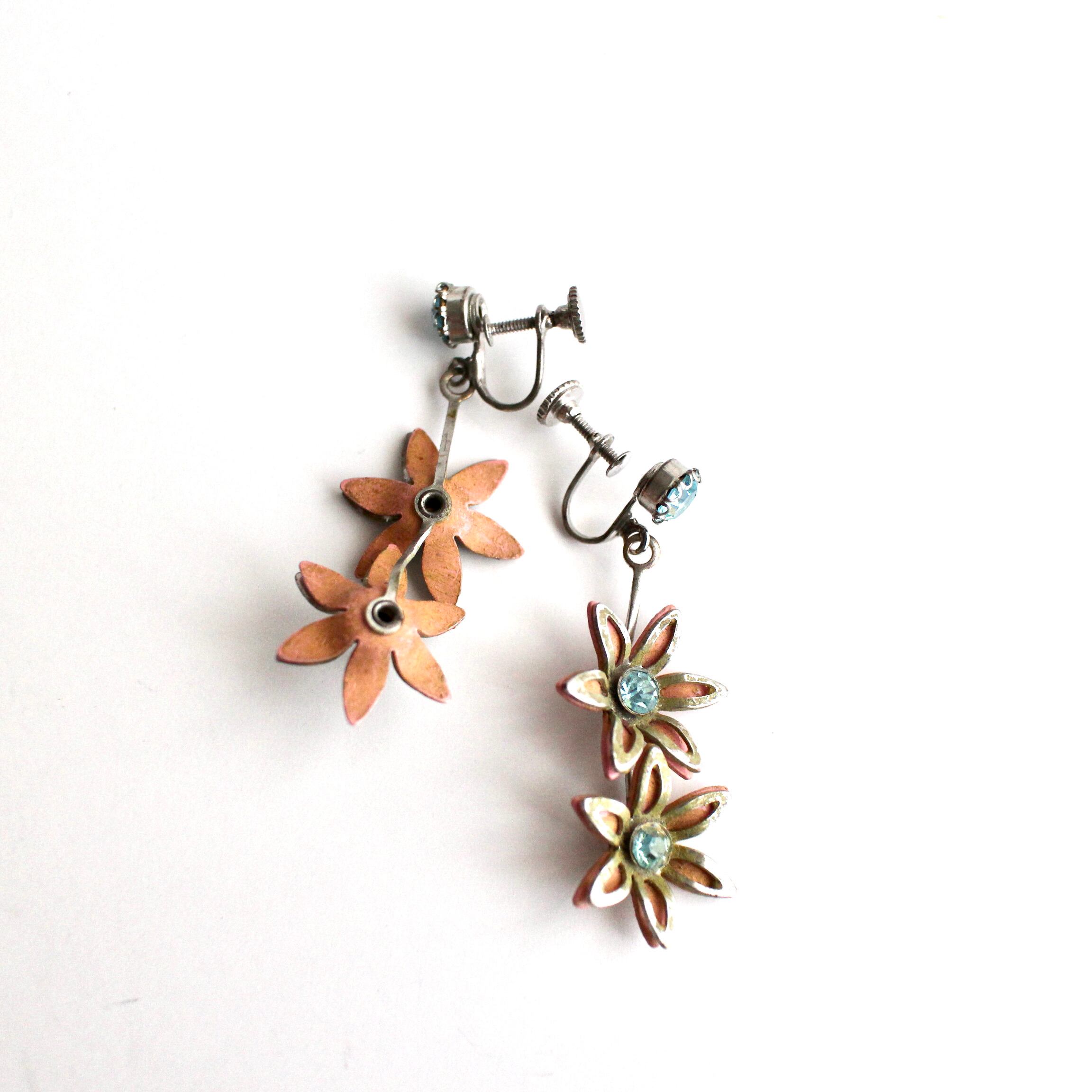 ピンク×ブルー*ダブルフラワー*ヴィンテージドロップイヤリング