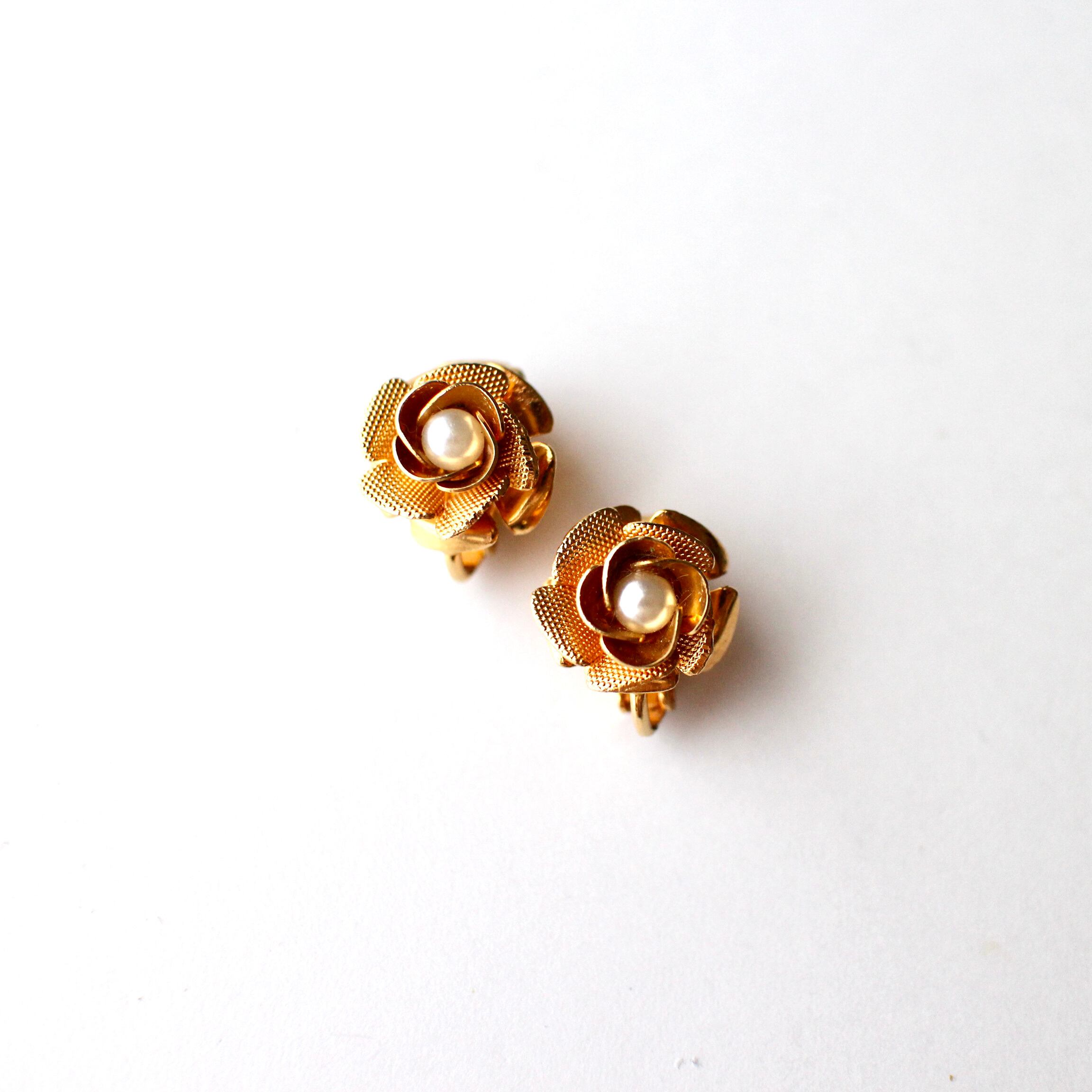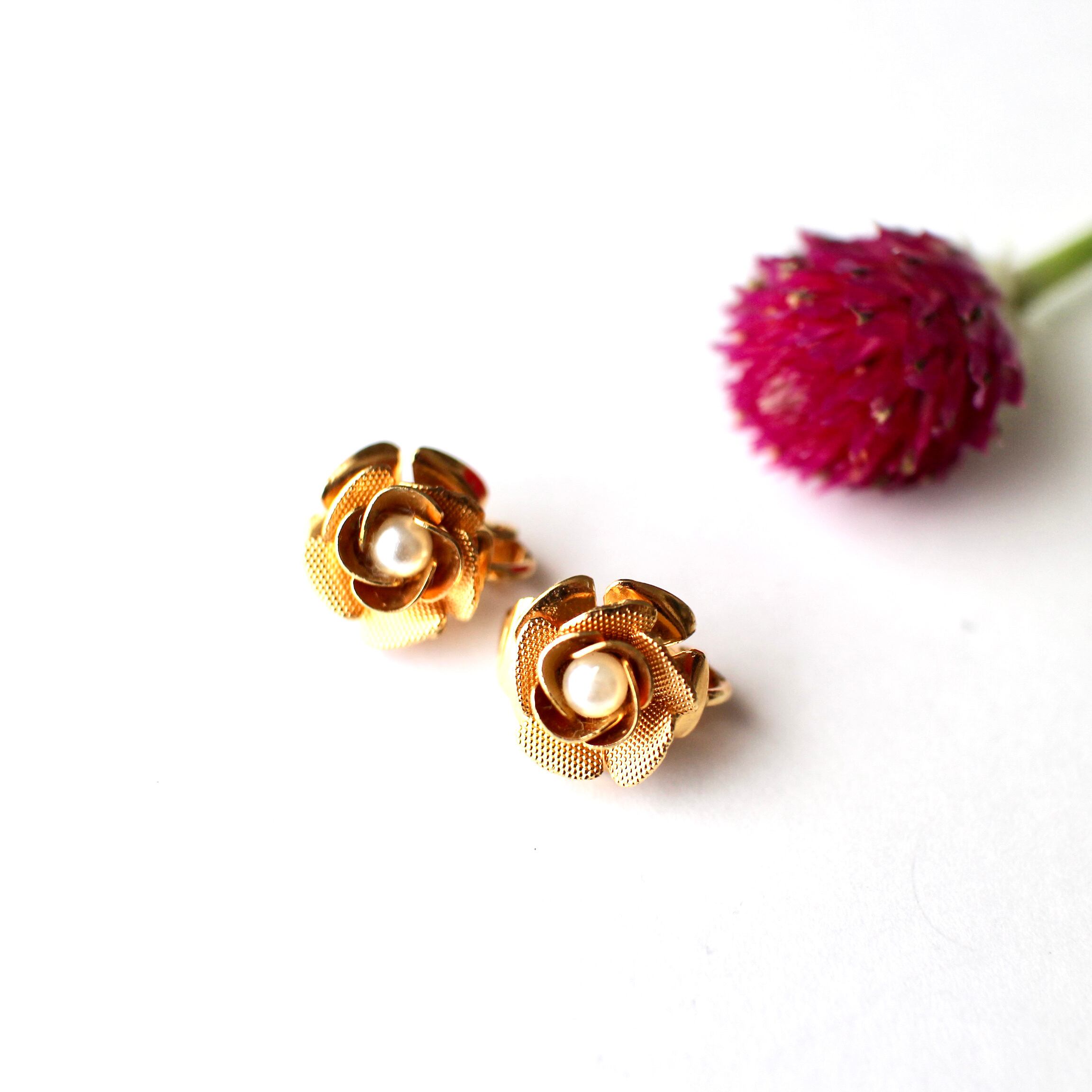 プチパール*ゴールドメタルフラワー*ヴィンテージイヤリング