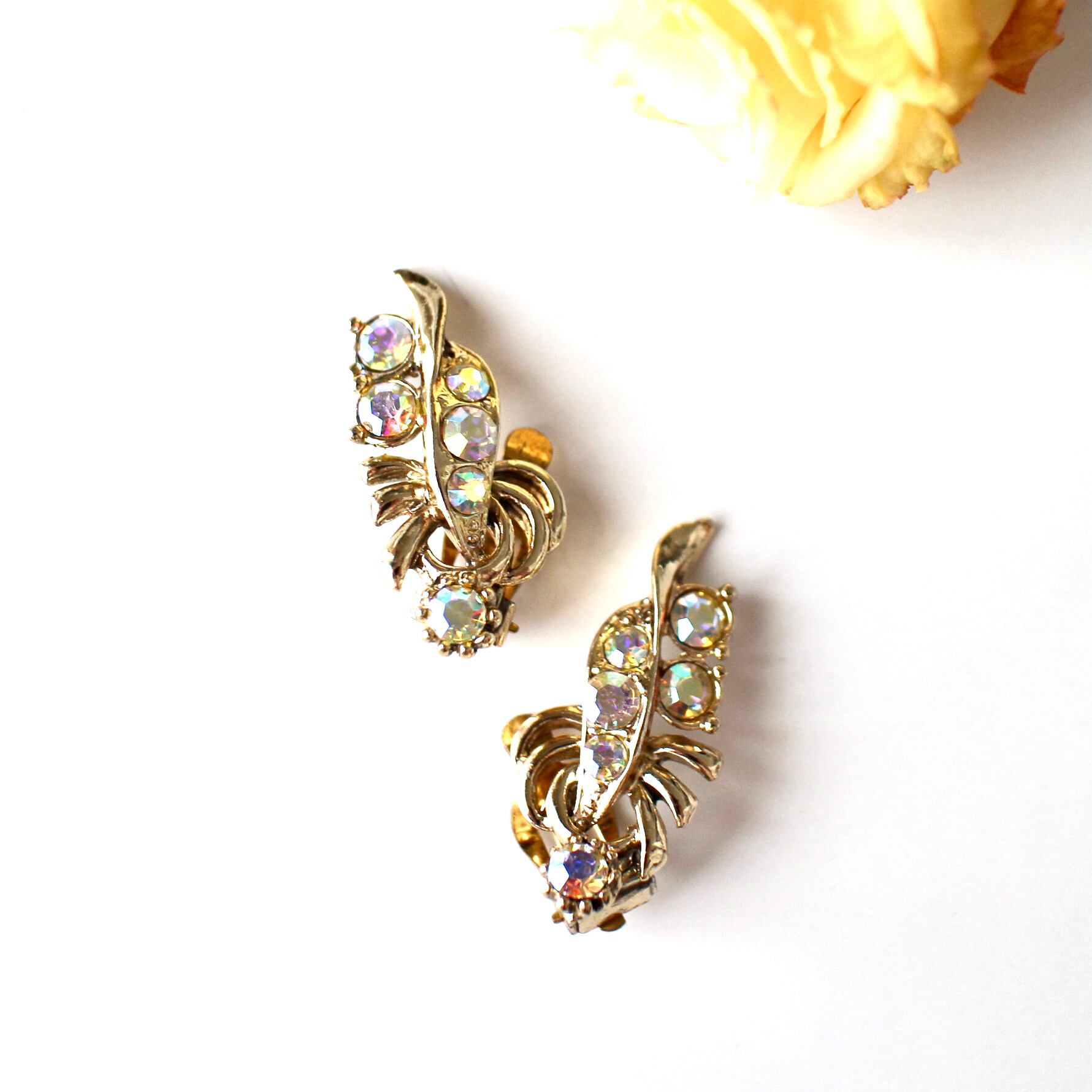 オーロラフラワー*華奢リーフ*ヴィンテージイヤリング