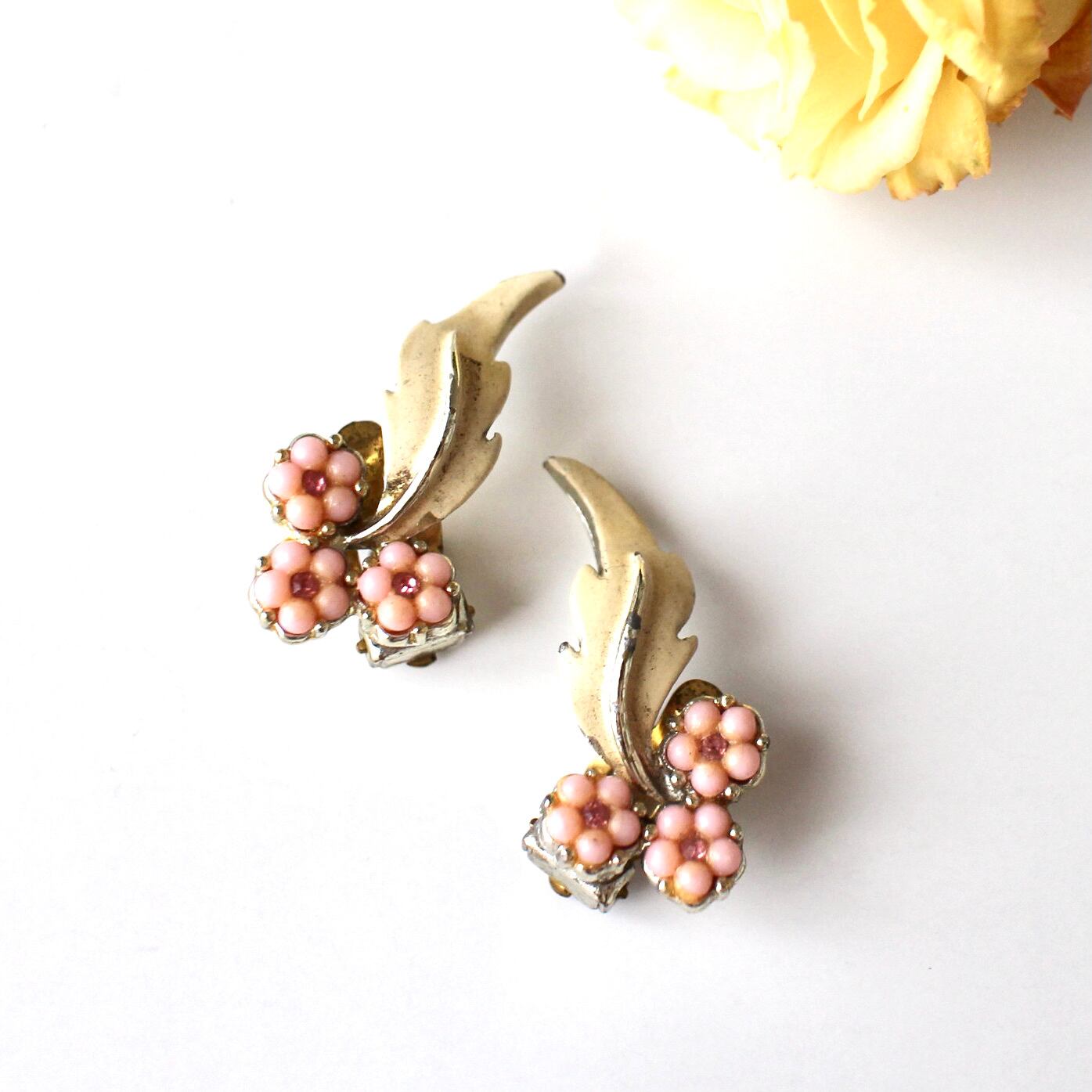 プチピンクフラワー*ペイントリーフ*ヴィンテージイヤリング