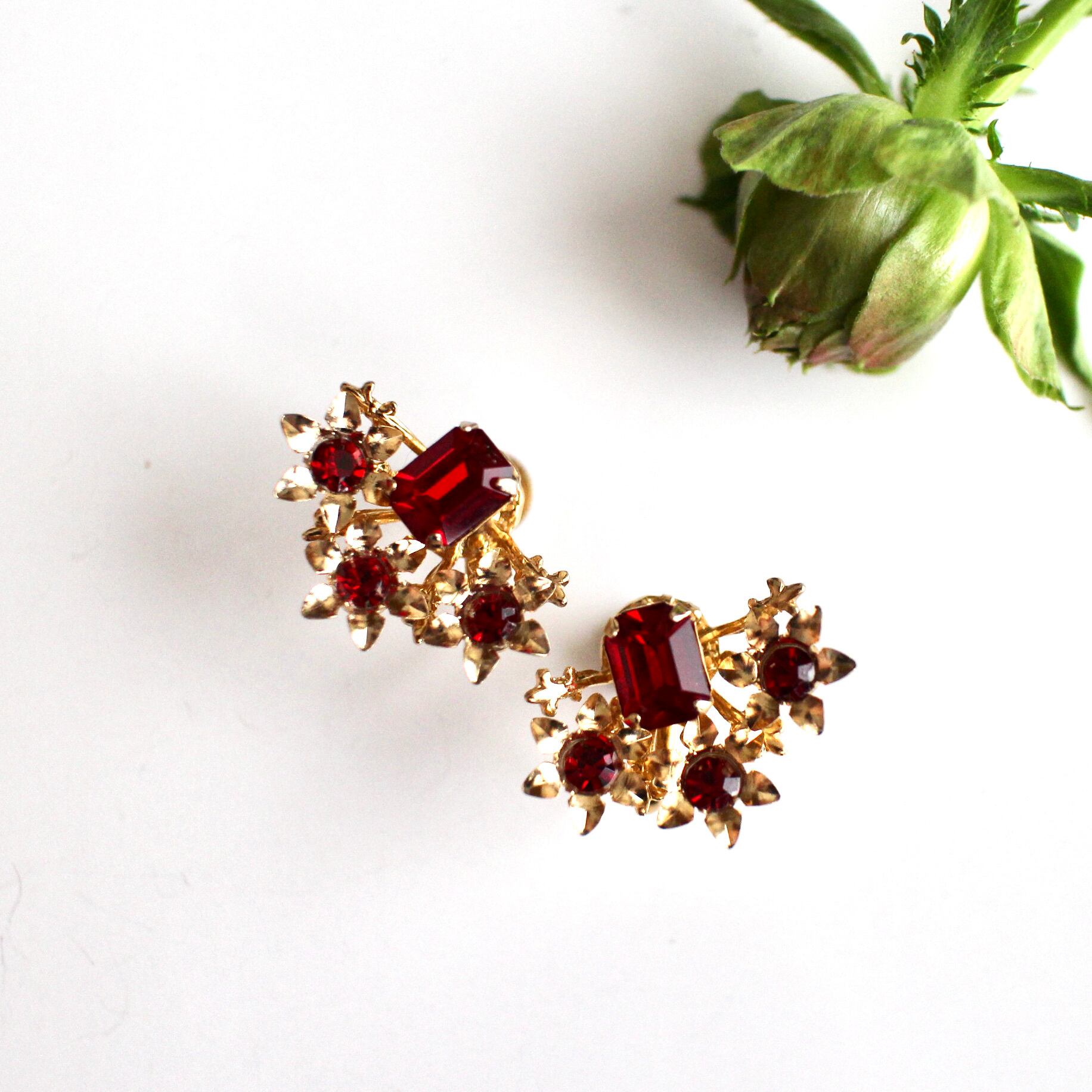 Coro*レッドビジュー*プチフラワー*ヴィンテージイヤリング