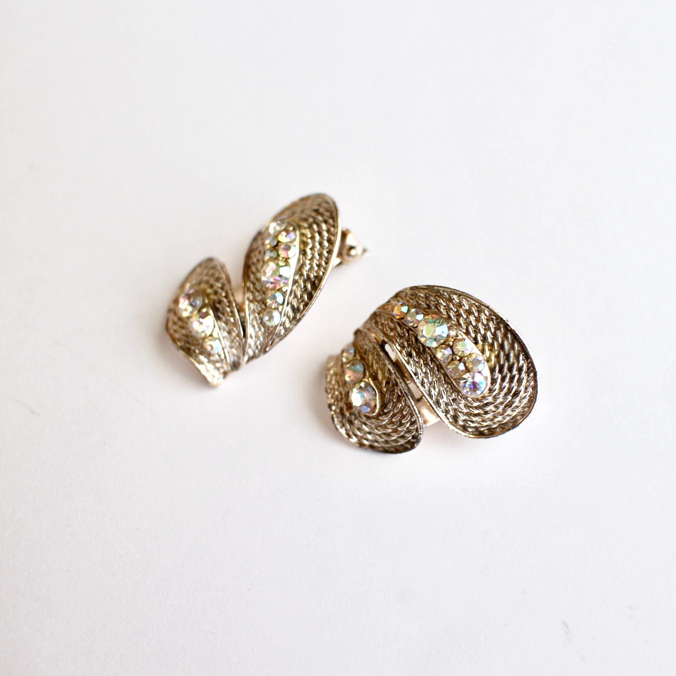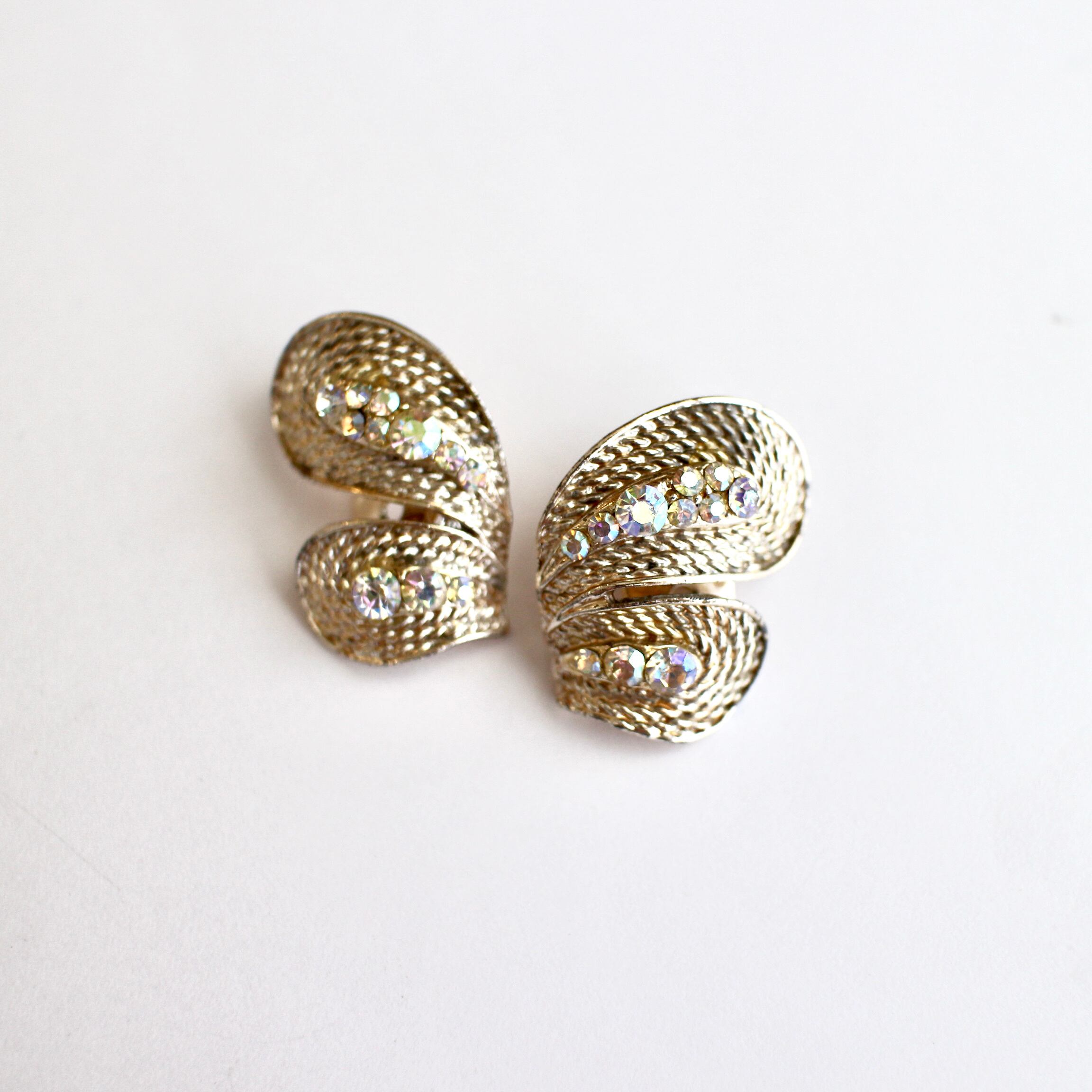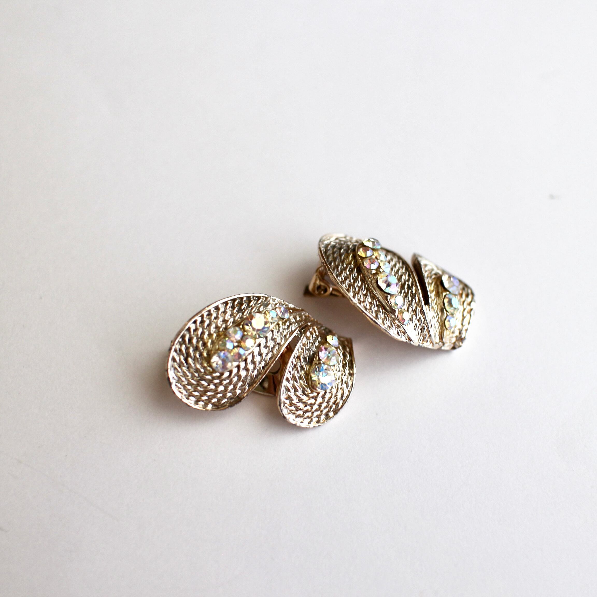 クリアオーロラ*ロープデザインメタル*バタフライヴィンテージイヤリング