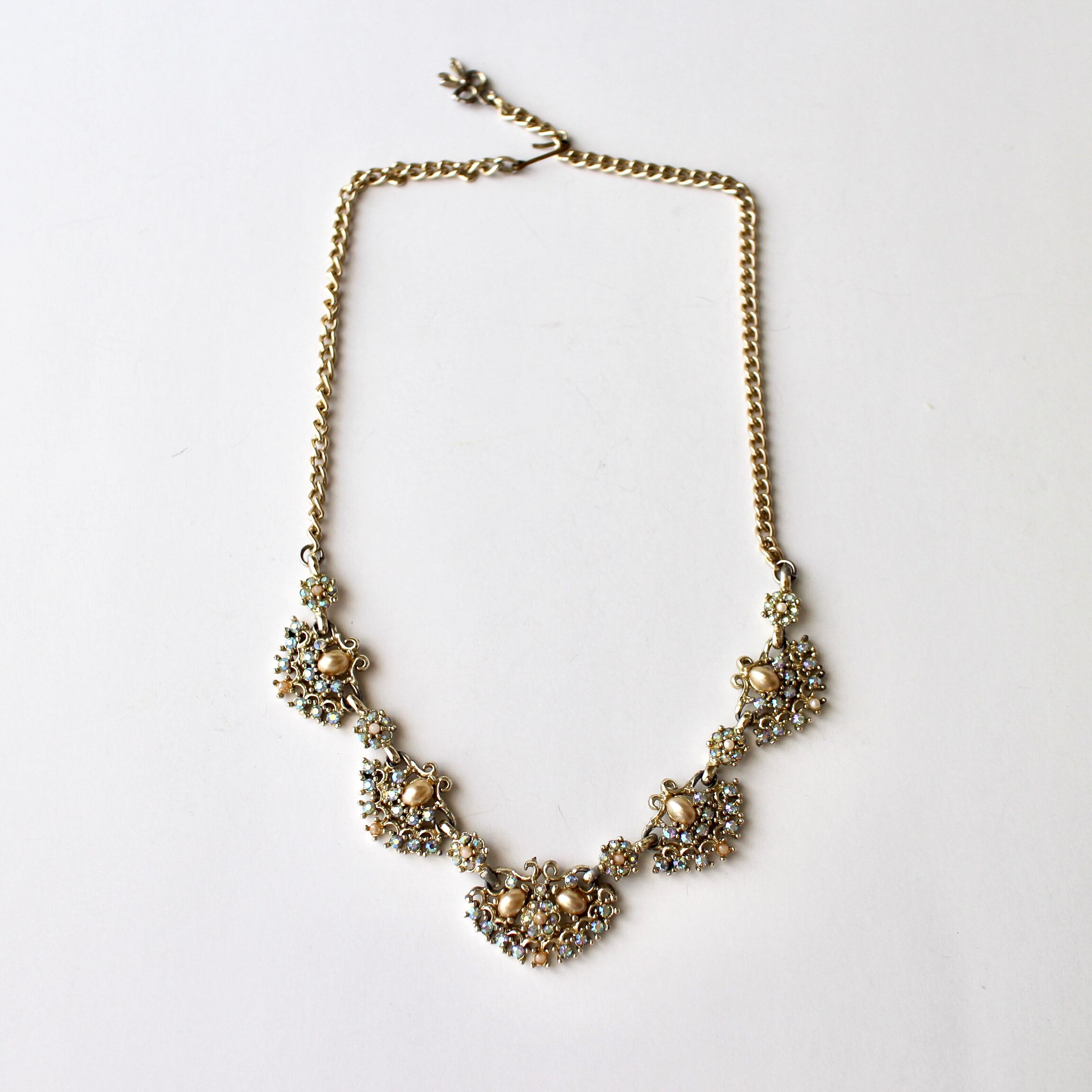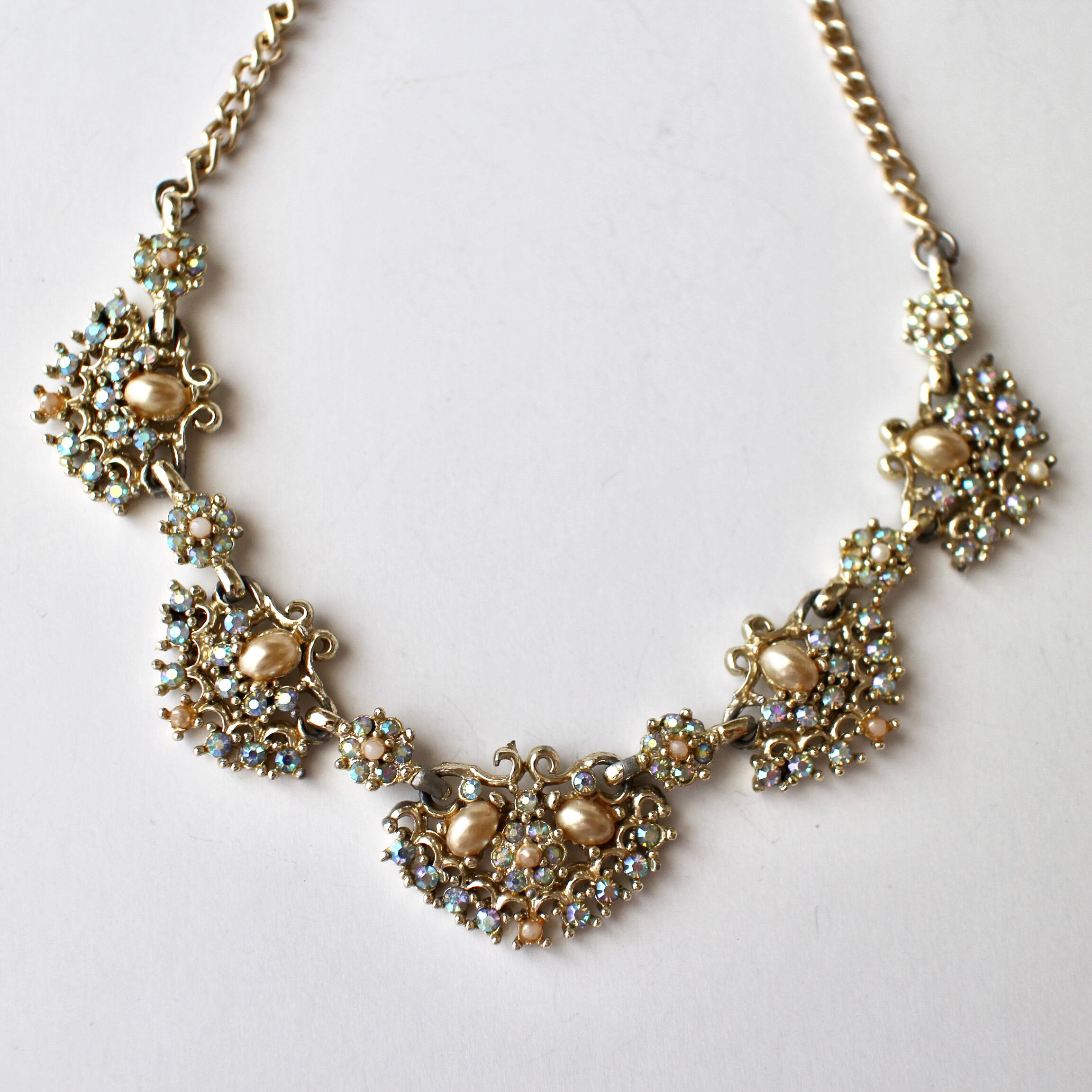 オーロラブルー*オーバルパール*エレガントモチーフ*ヴィンテージネックレス