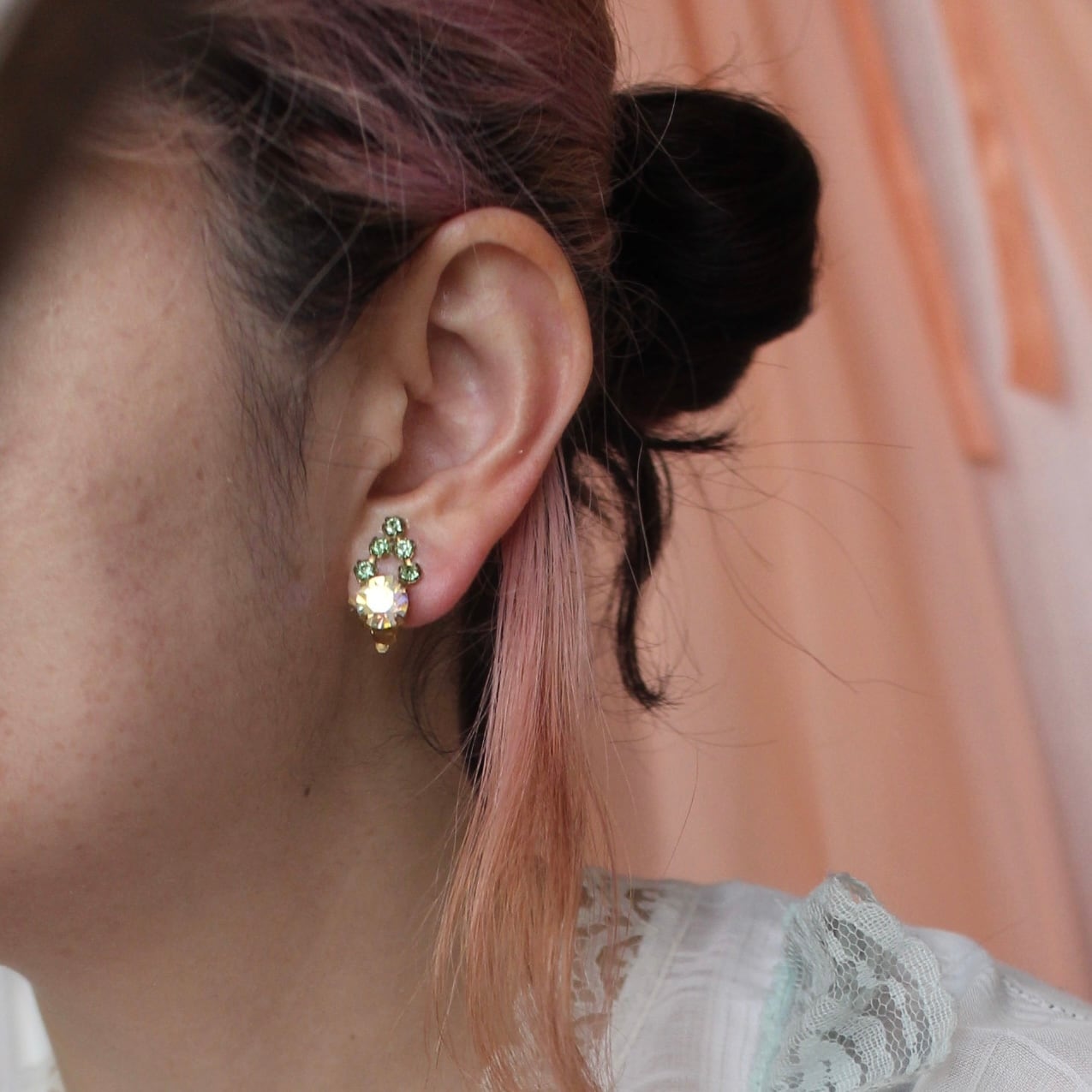 グリーントライアングル*ビッグオーロラビジュー*ヴィンテージイヤリング