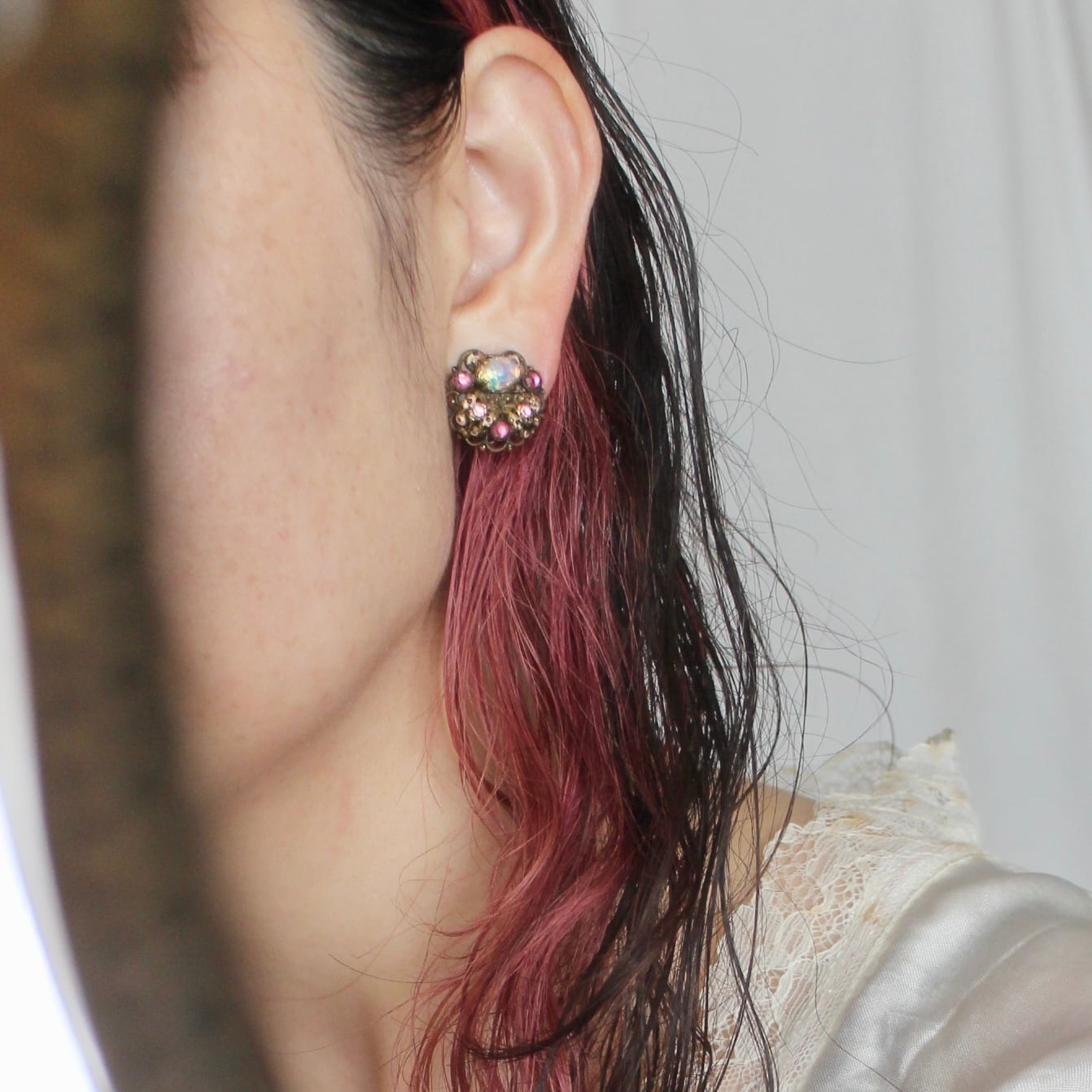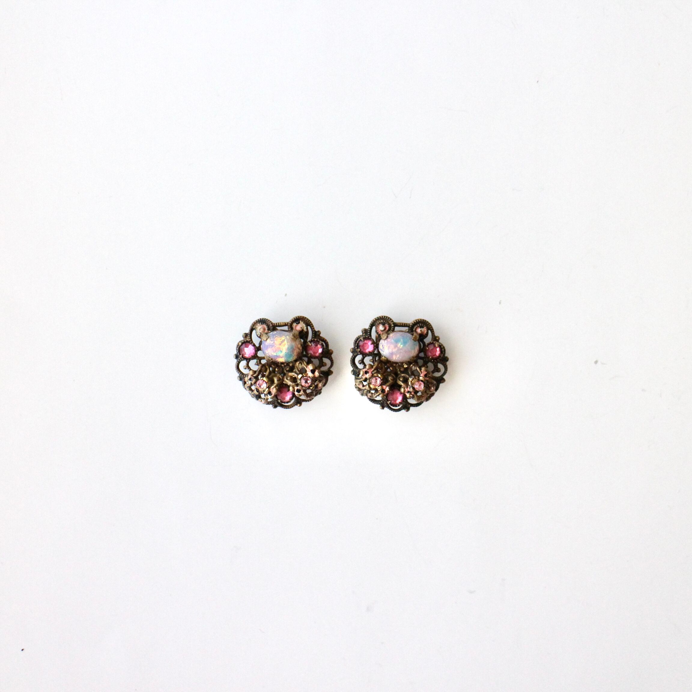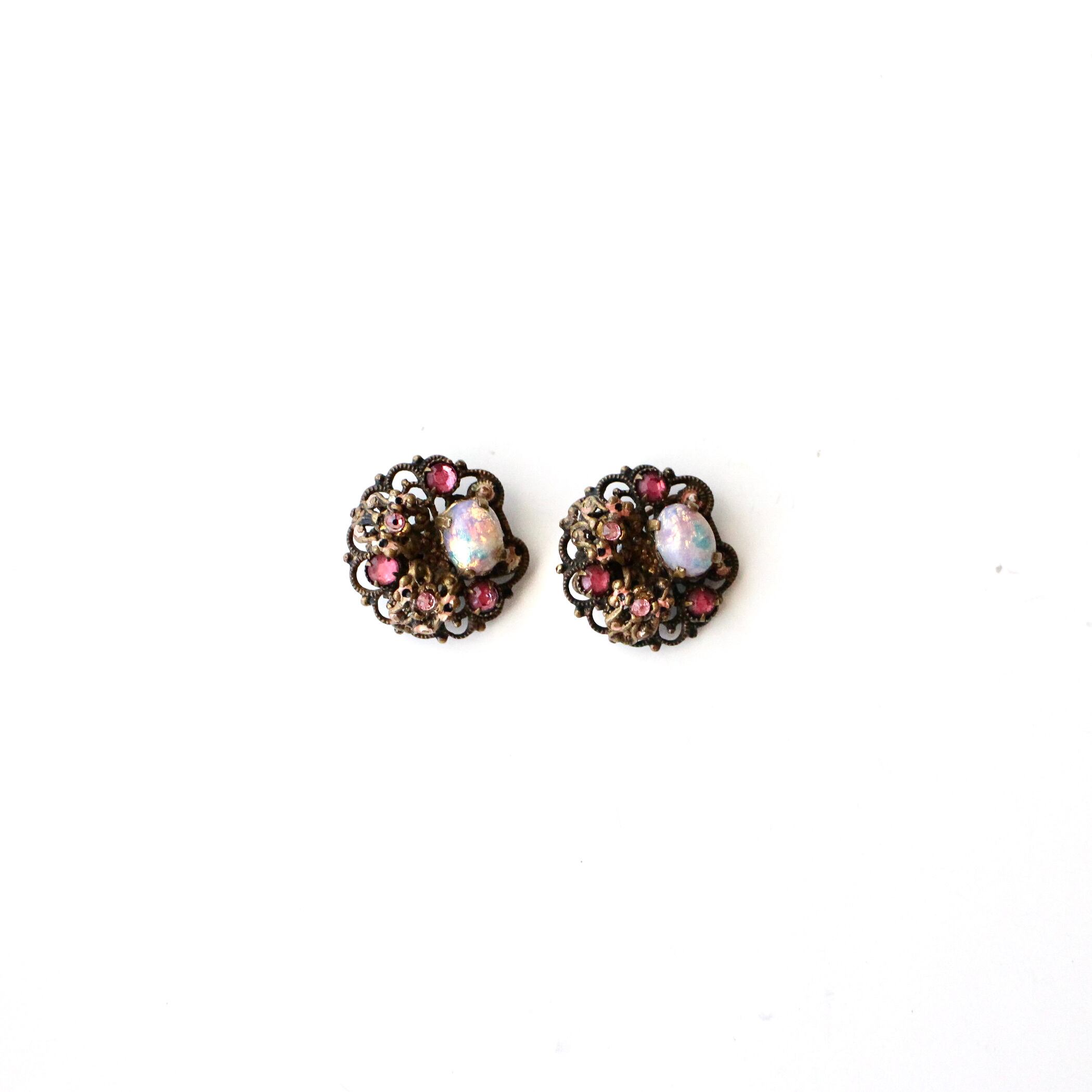 オパールガラス*ピンクペイントフィリグリー*ヴィンテージイヤリング