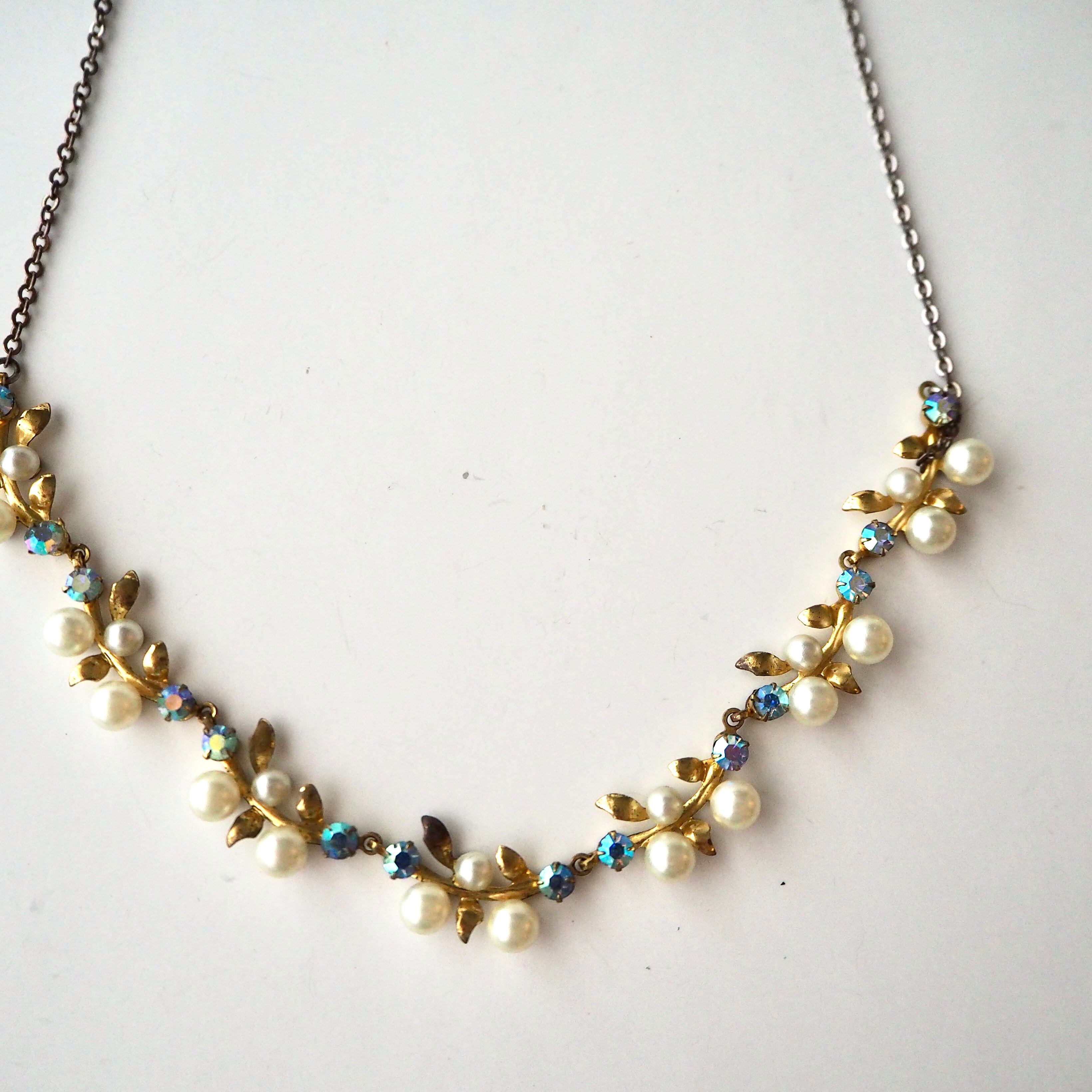 オーロラ×パールフラワー*プチリーフ*ヴィンテージネックレス