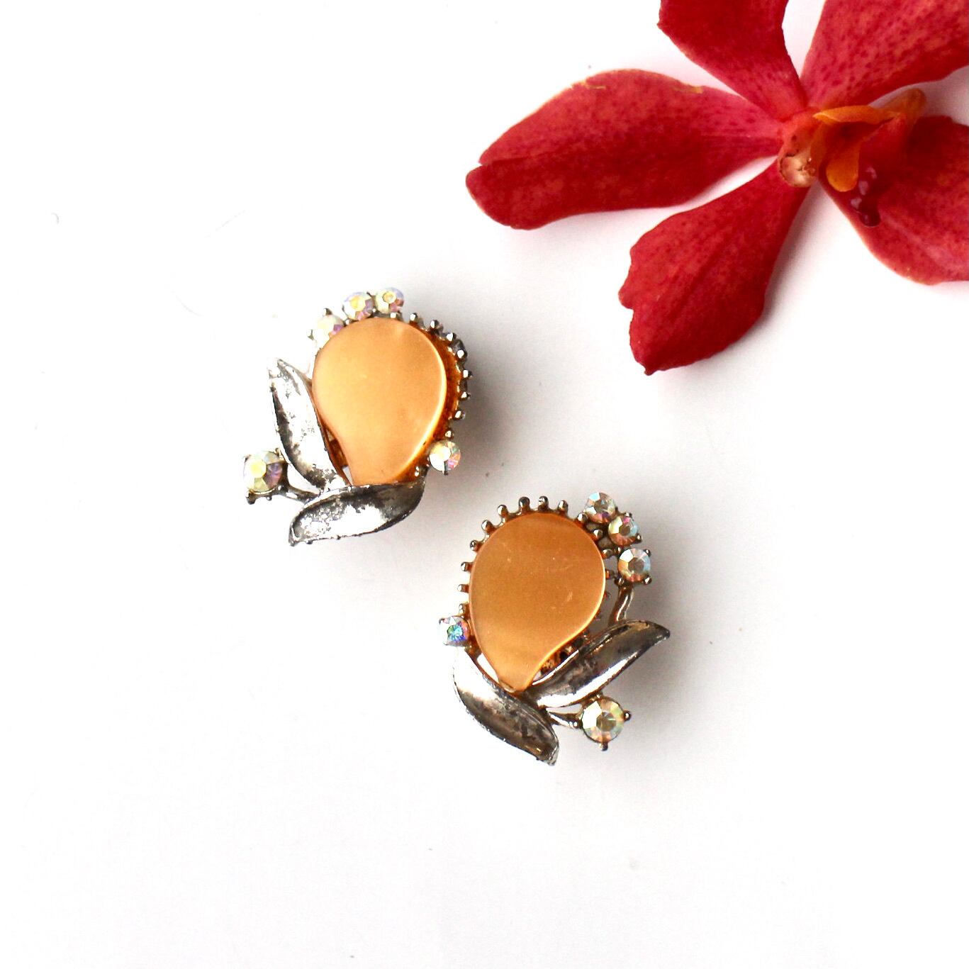 オレンジルーサイト*オーロラビジュー*ヴィンテージイヤリング