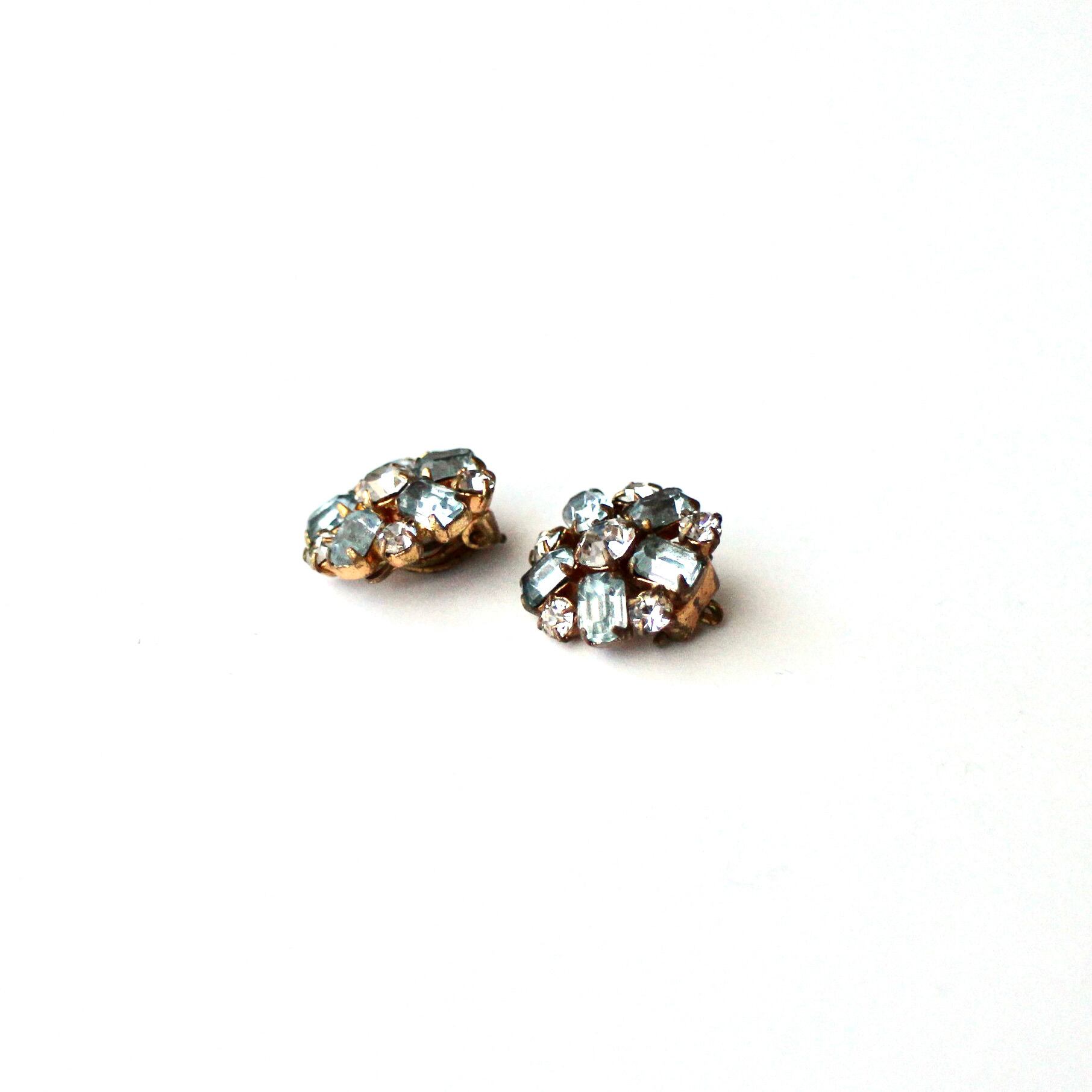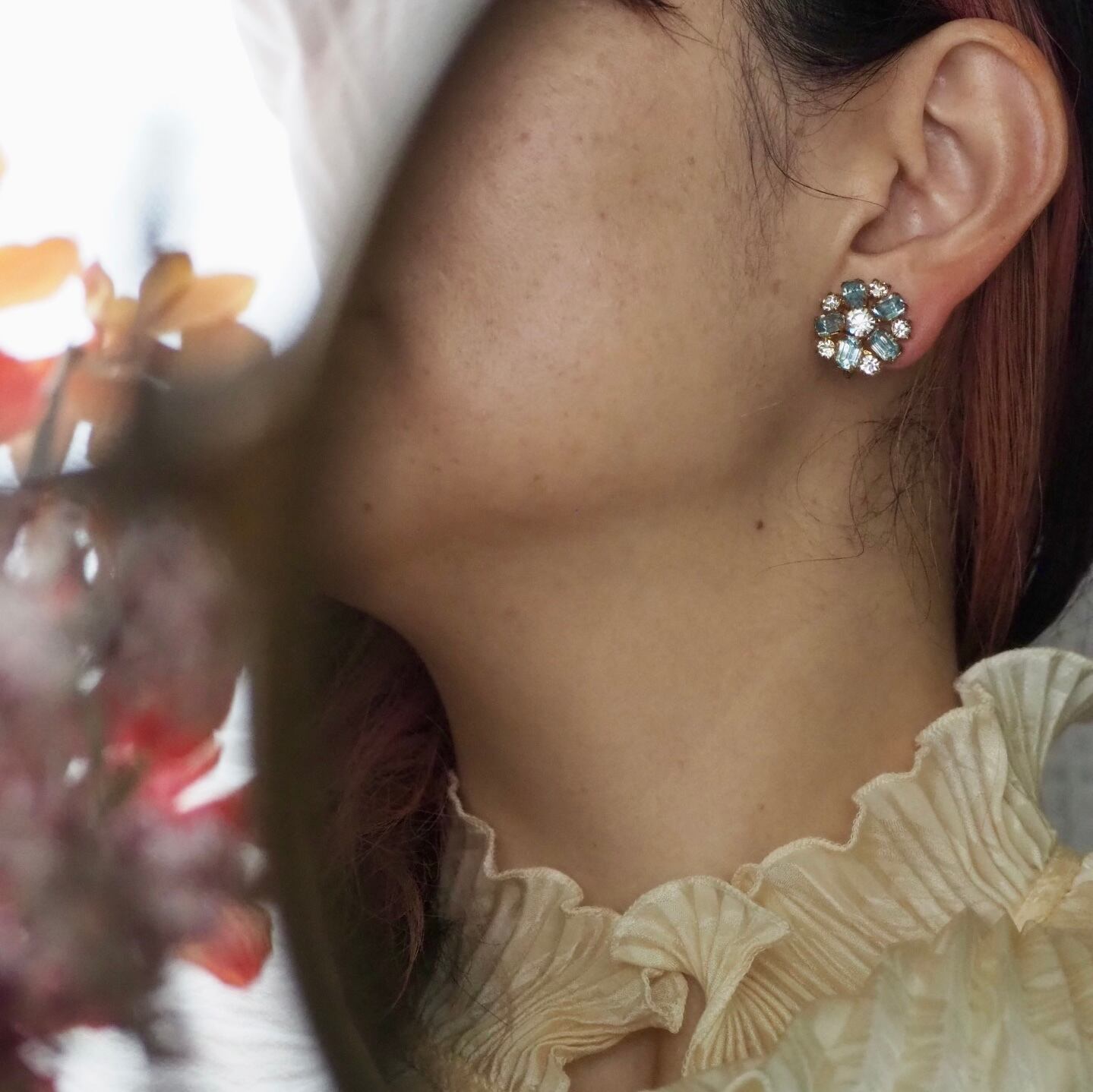 ライトブルー×クリアビジュー*フラワーサークル*ヴィンテージイヤリング