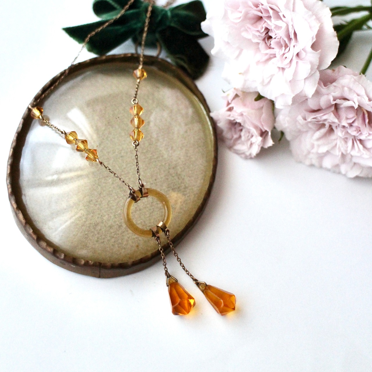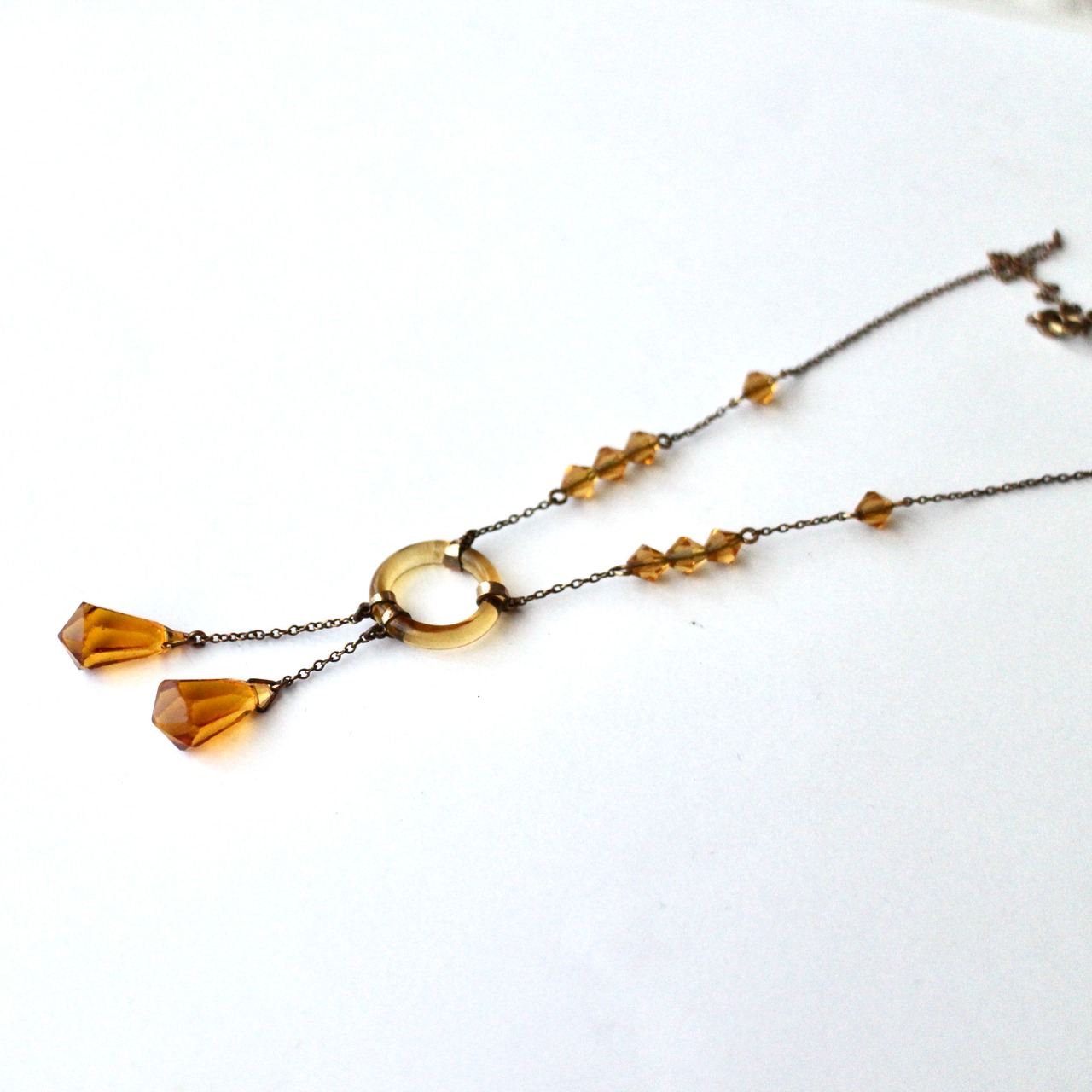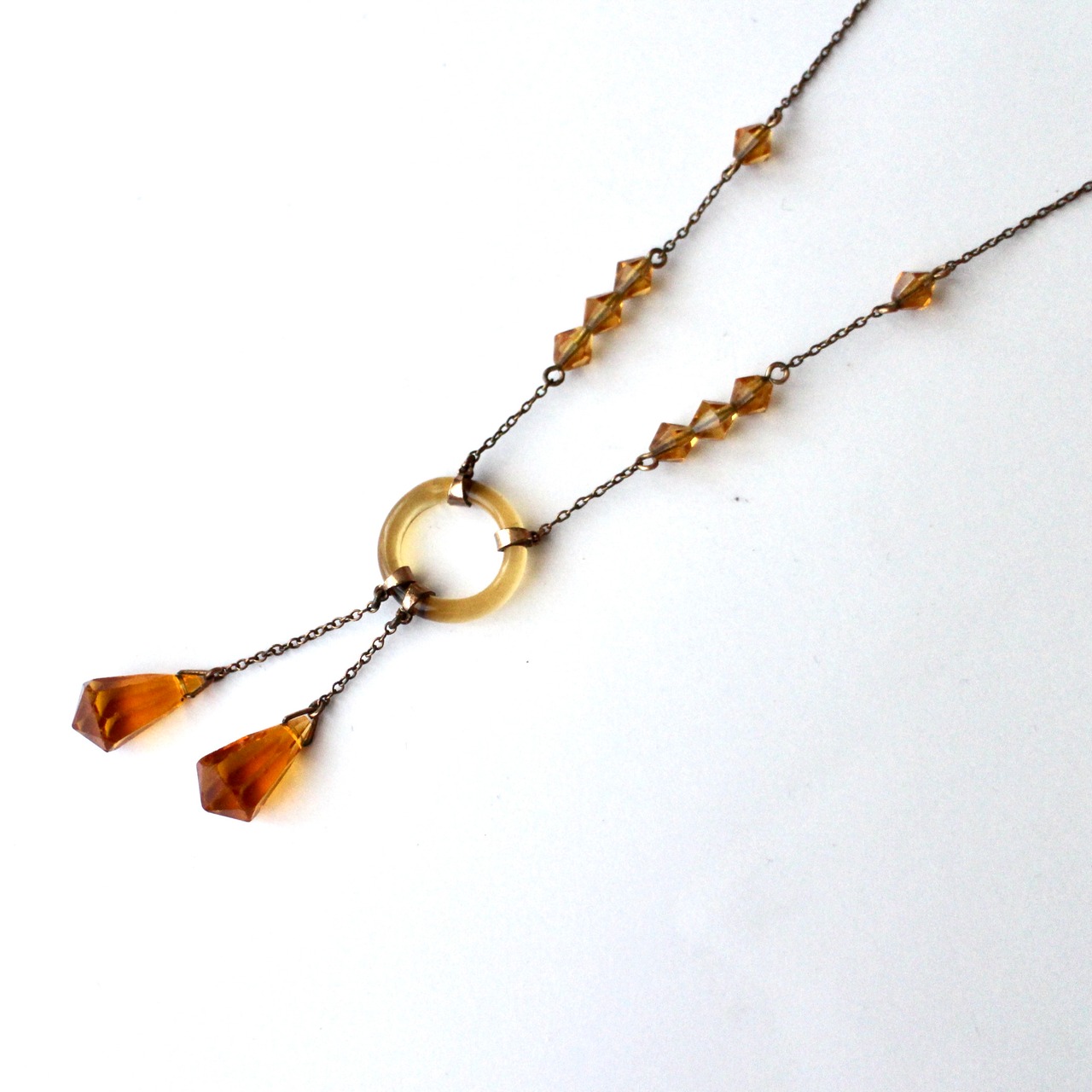 Art Deco*アンバーガラス*ネグリジェネックレス