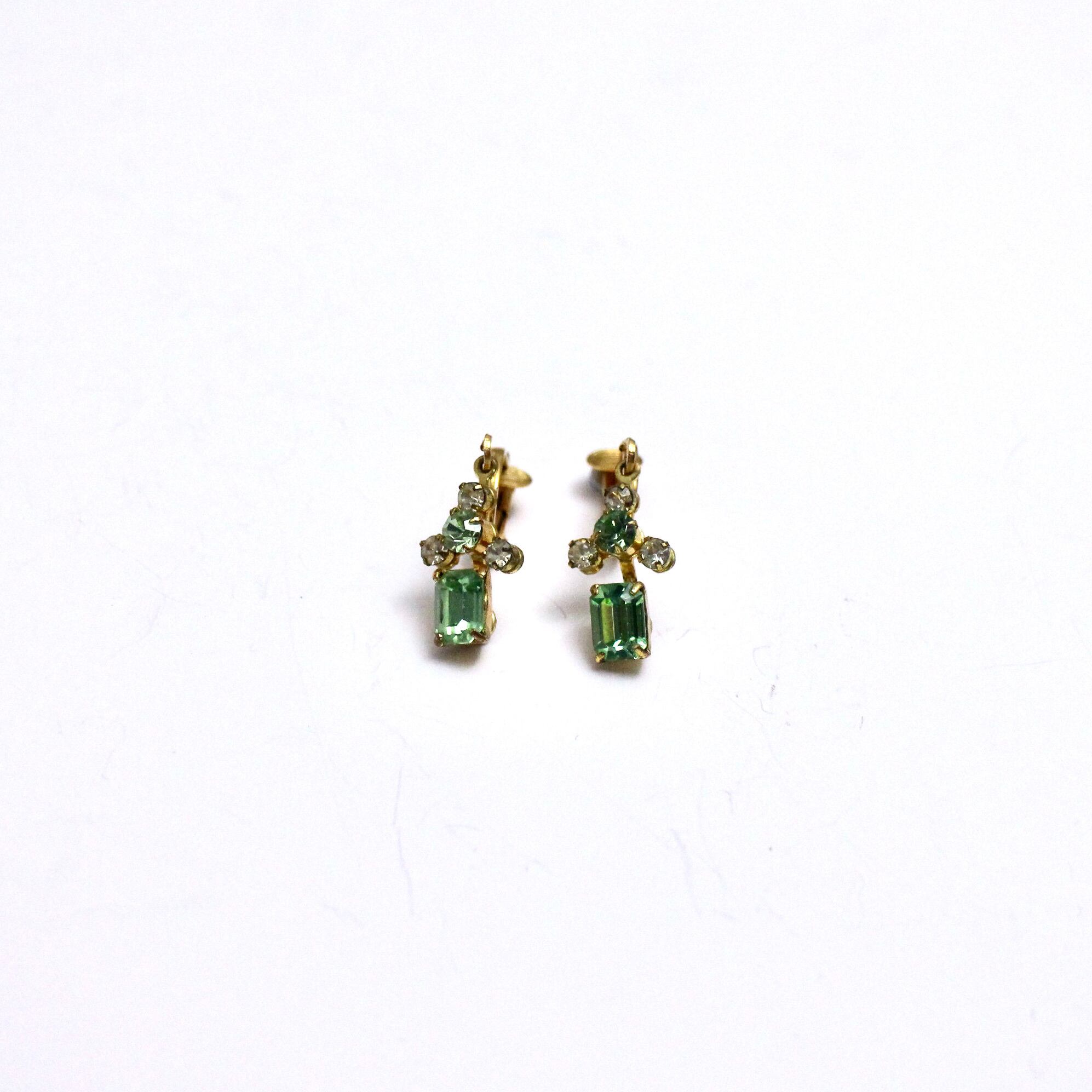 ライトグリーンスクエアビジュー*ドロップヴィンテージイヤリング