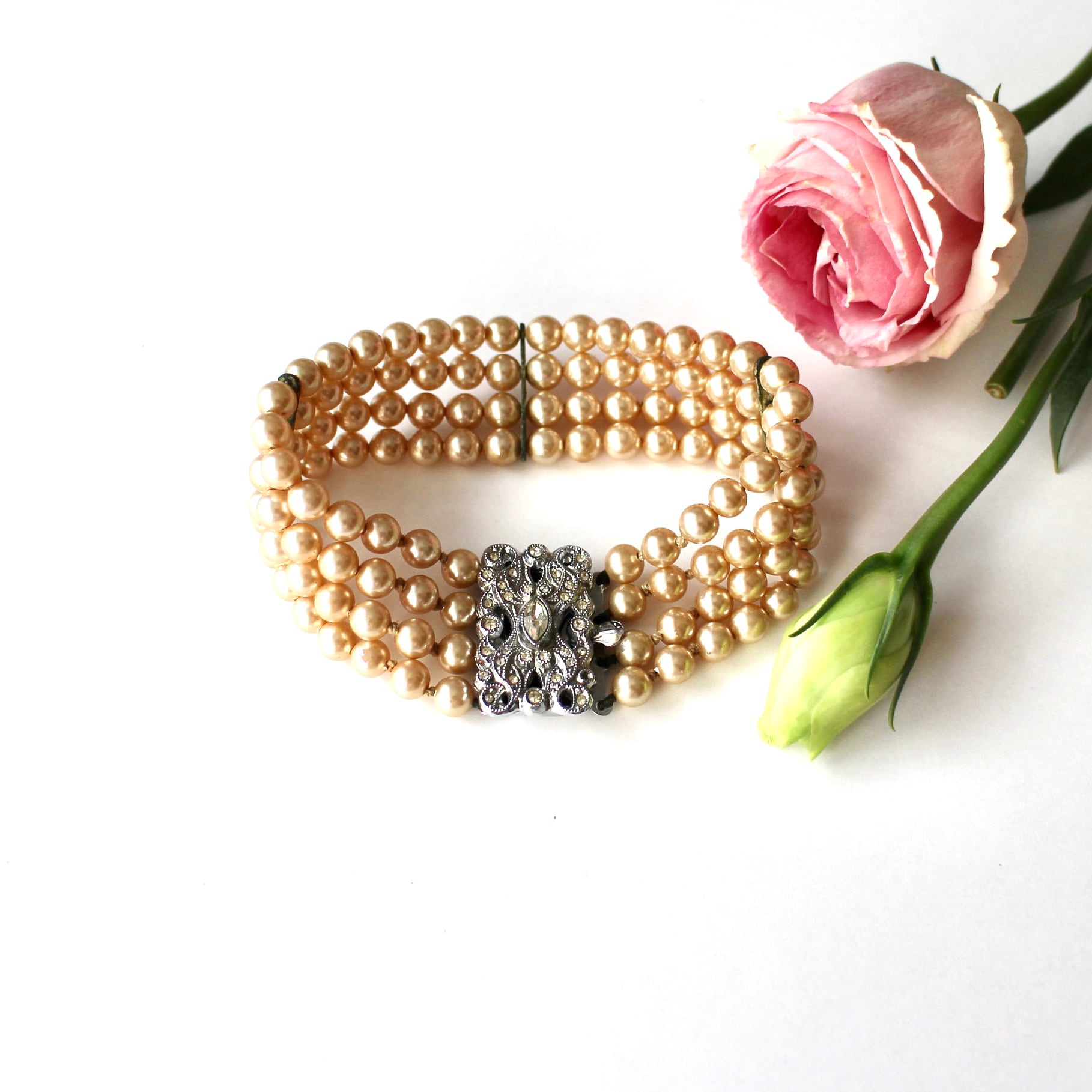 ビジュークラスプ*3連パール*ヴィンテージブレスレット