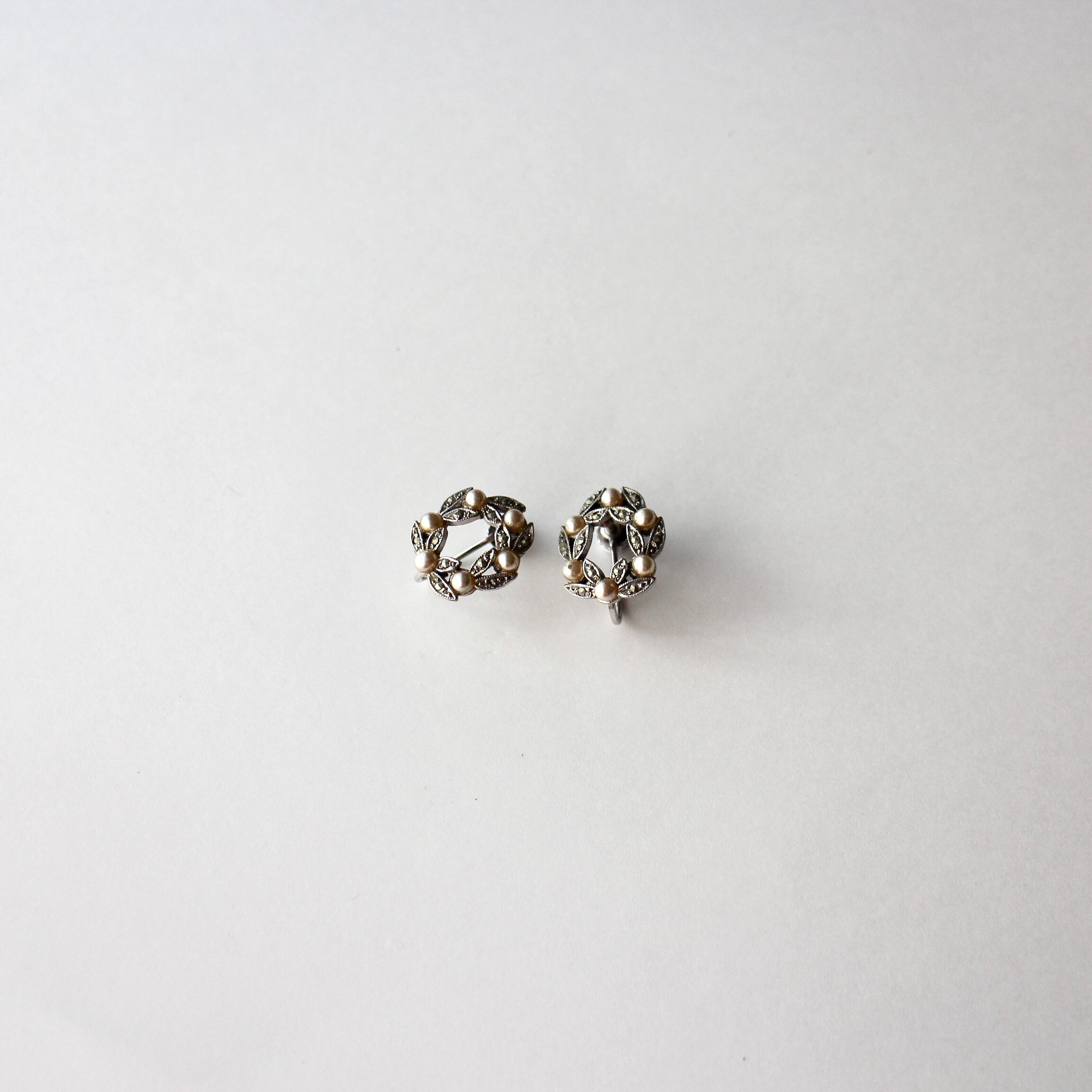 プチパール×マーカサイトサークル*ヴィンテージイヤリング