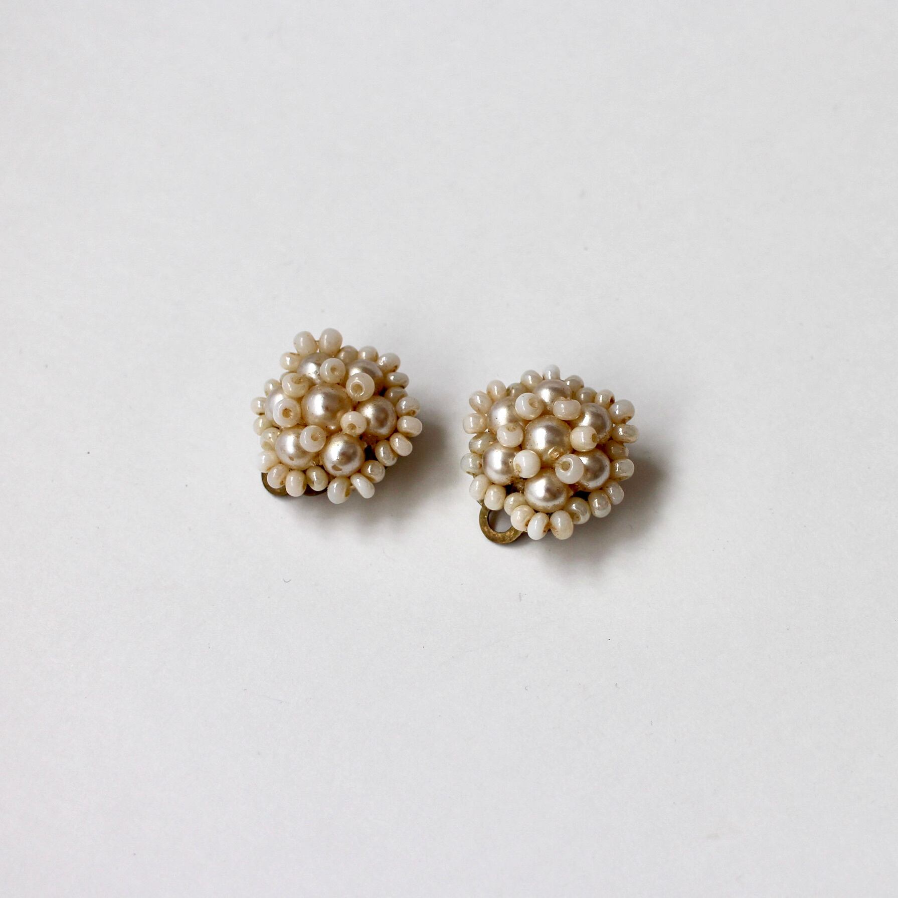 パール×ビーズフラワー*ヴィンテージイヤリング