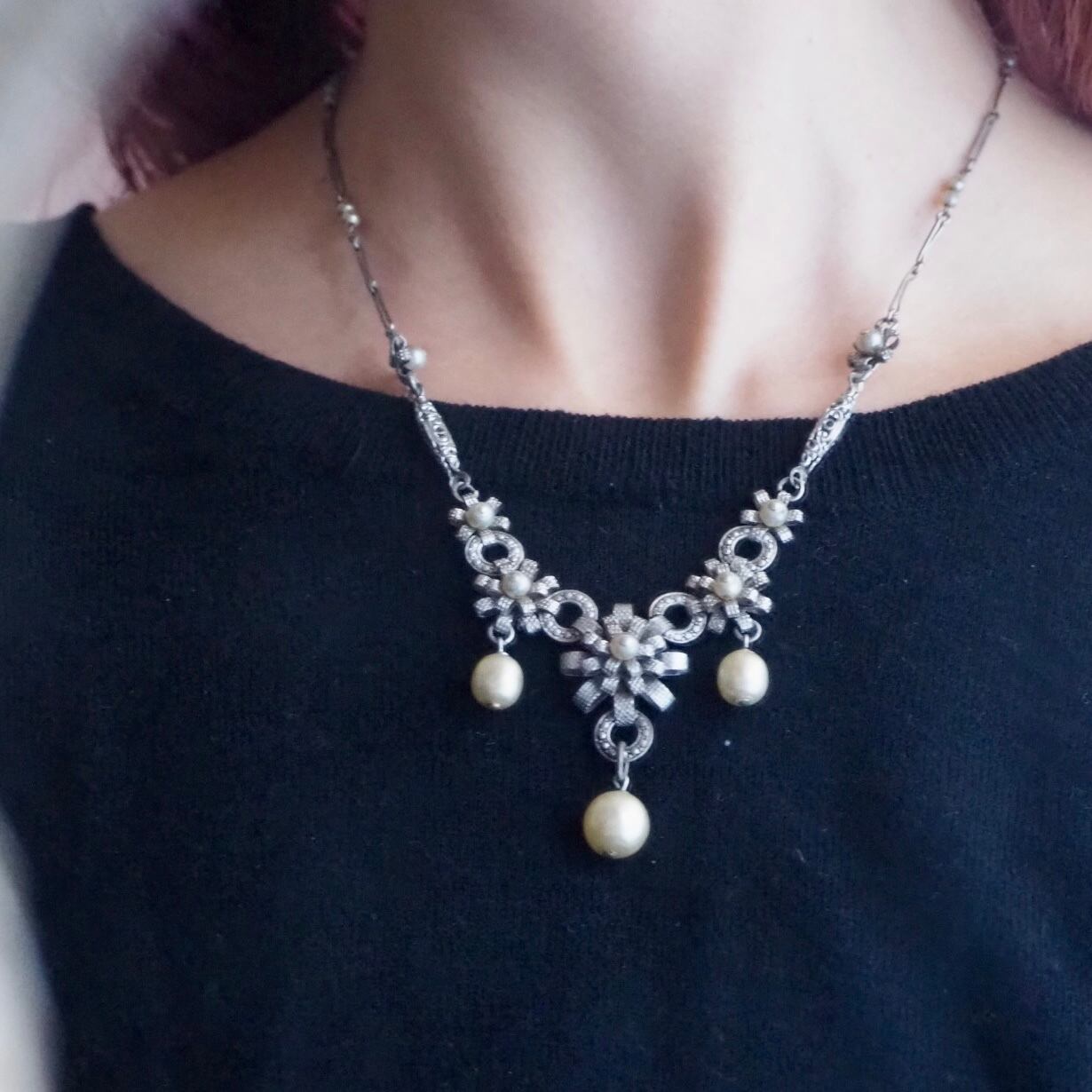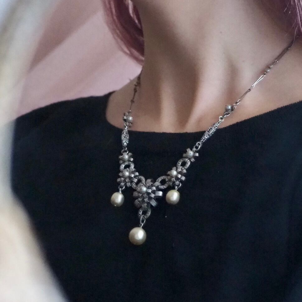 パールシャンデリア*デコラティブデザイン*ヴィンテージネックレス