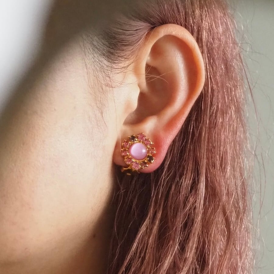 ミルキーピンクのぷっくりとしたガラスパーツを