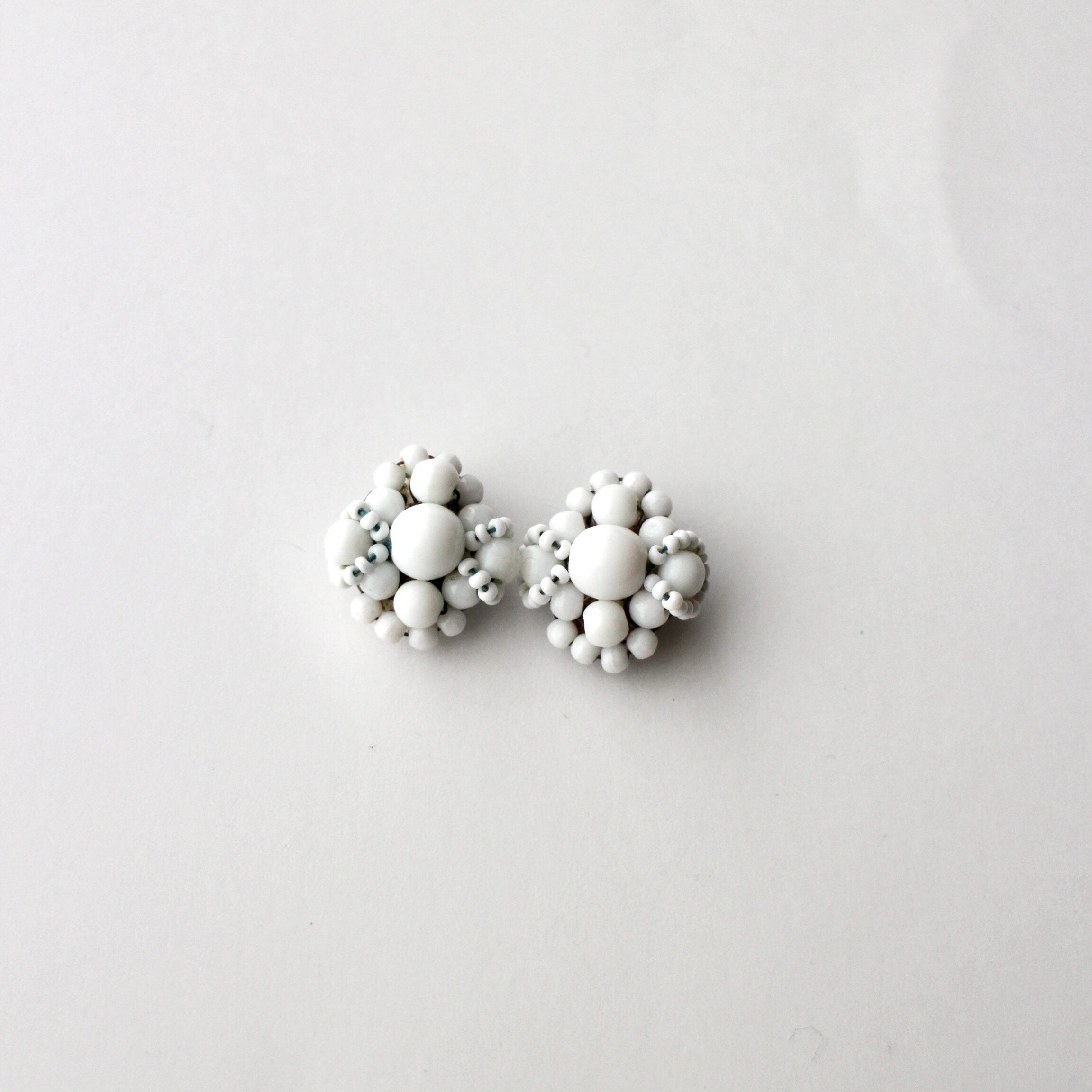 ホワイトミルクガラス*プチフラワー*ヴィンテージイヤリング