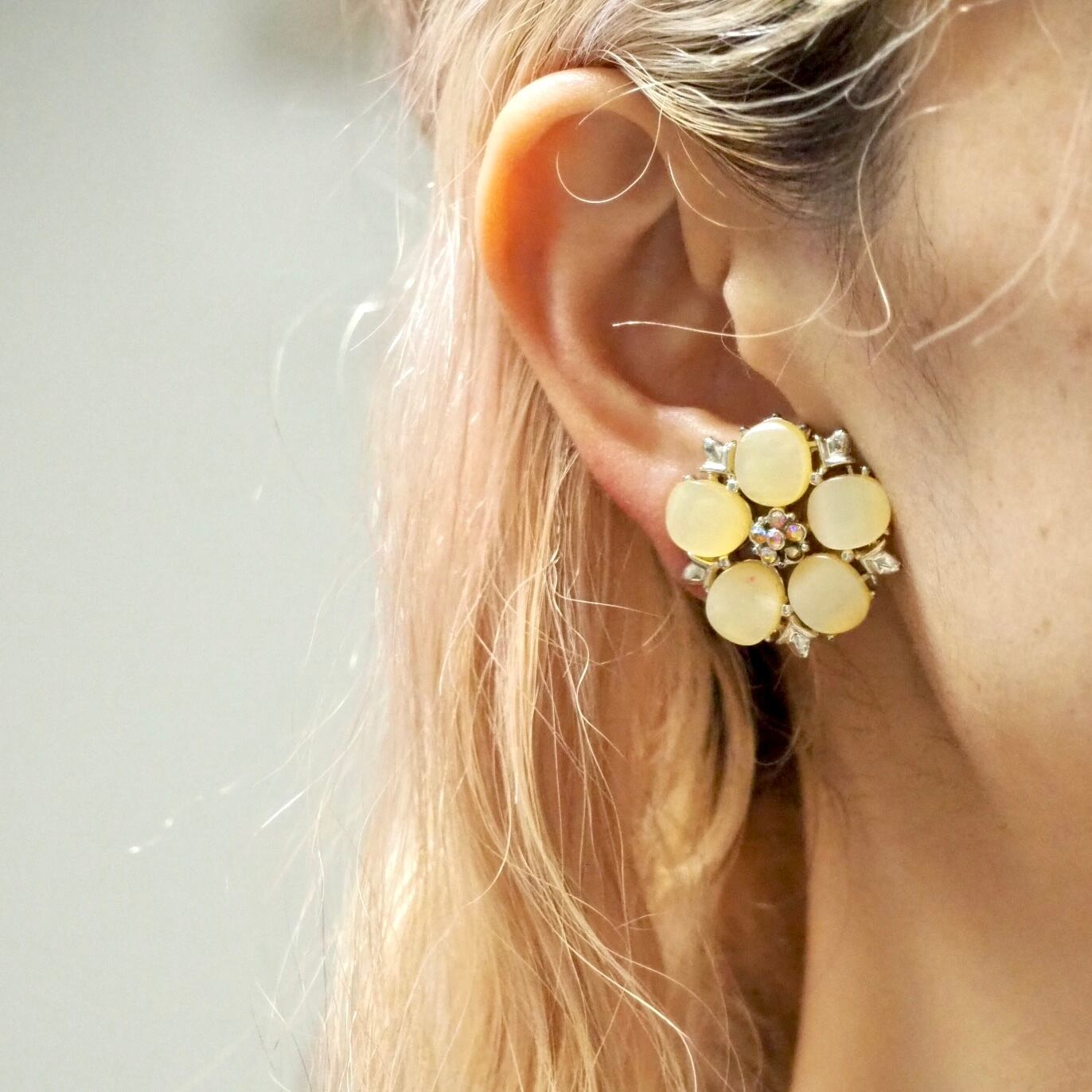 イエロールーサイトフラワー*ヴィンテージイヤリング