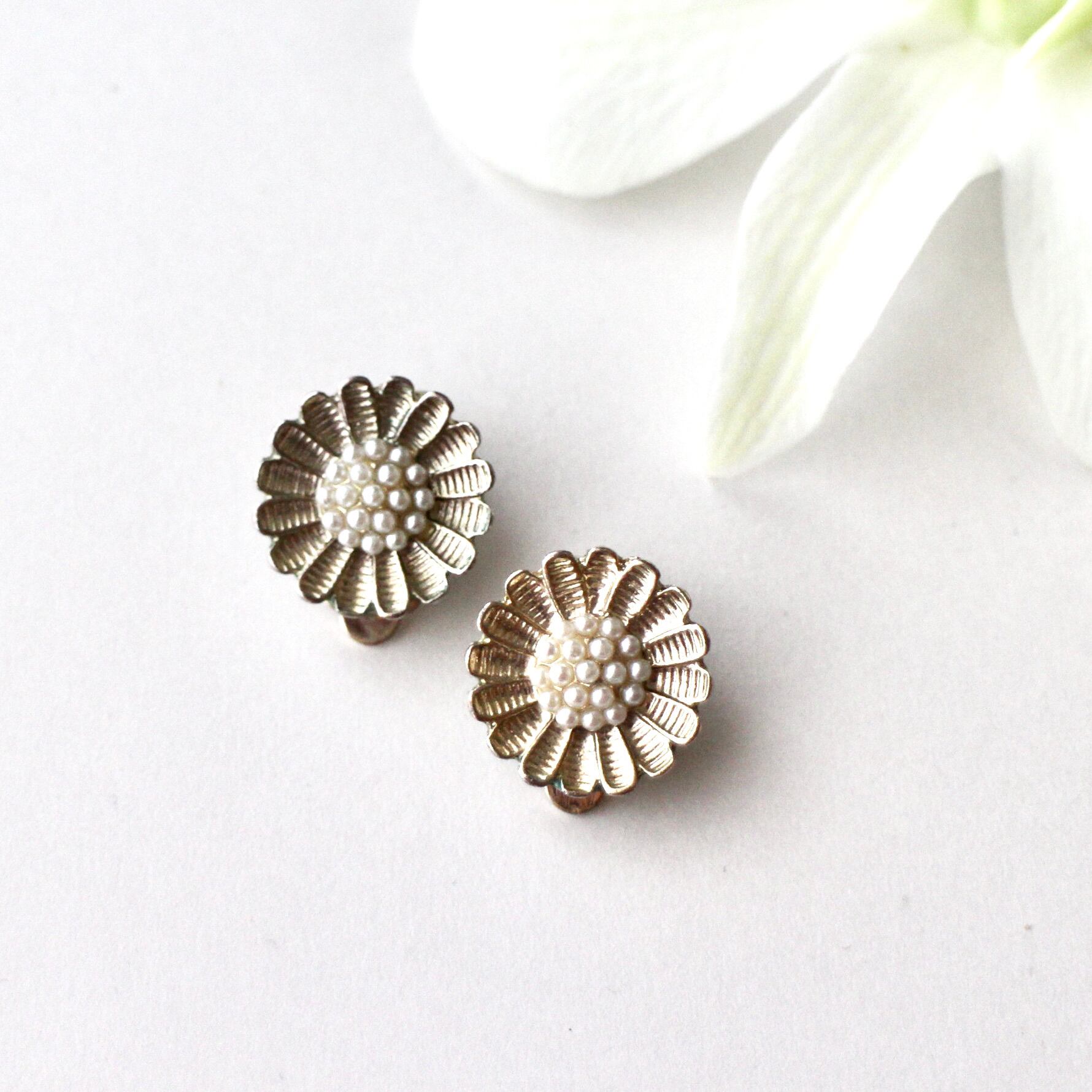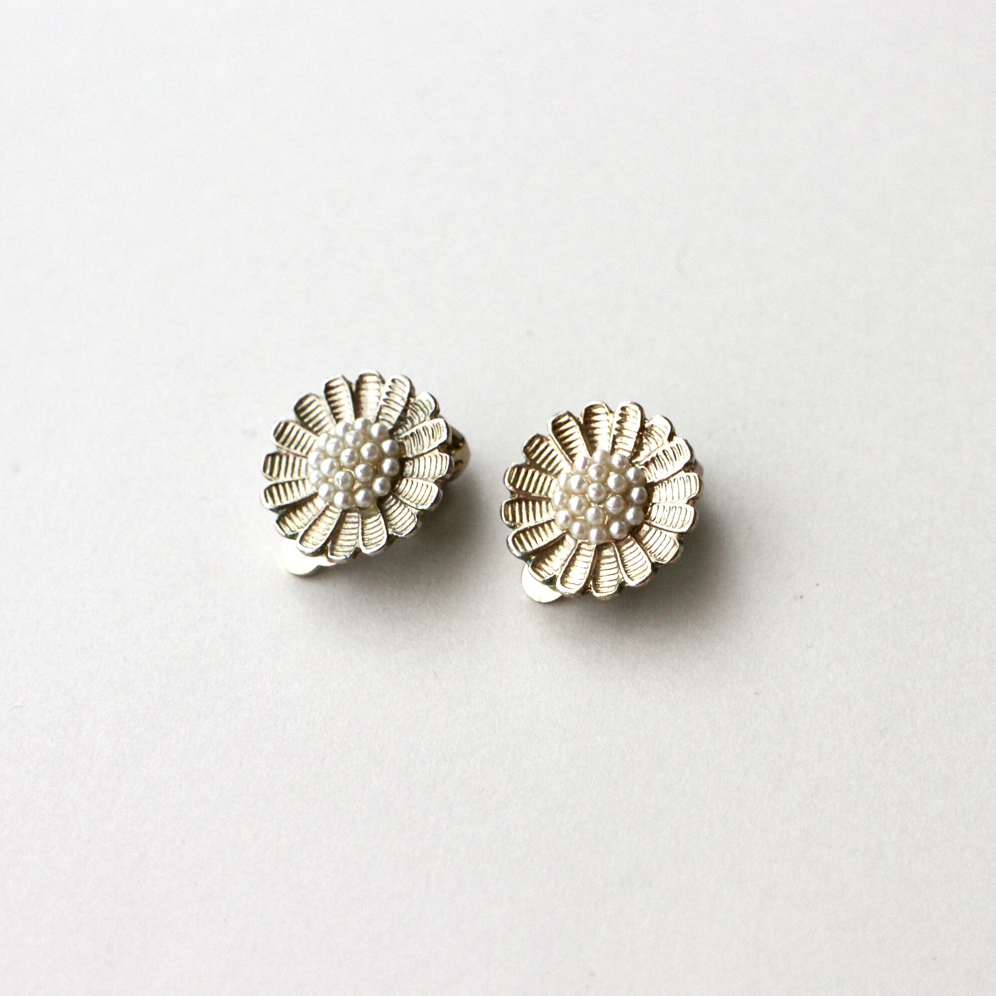 テクスチャーゴールドフラワー*プチパール*ビンテージイヤリング