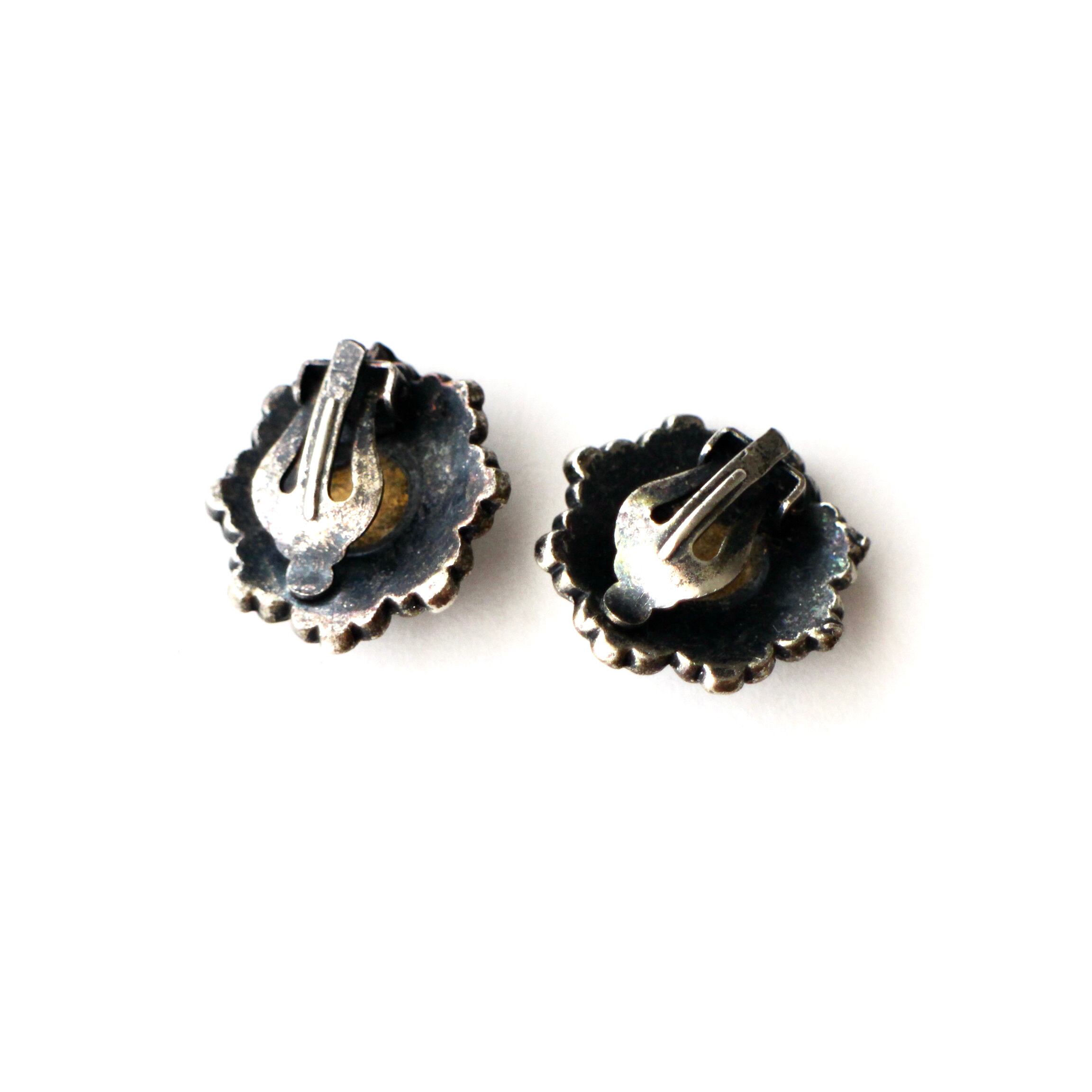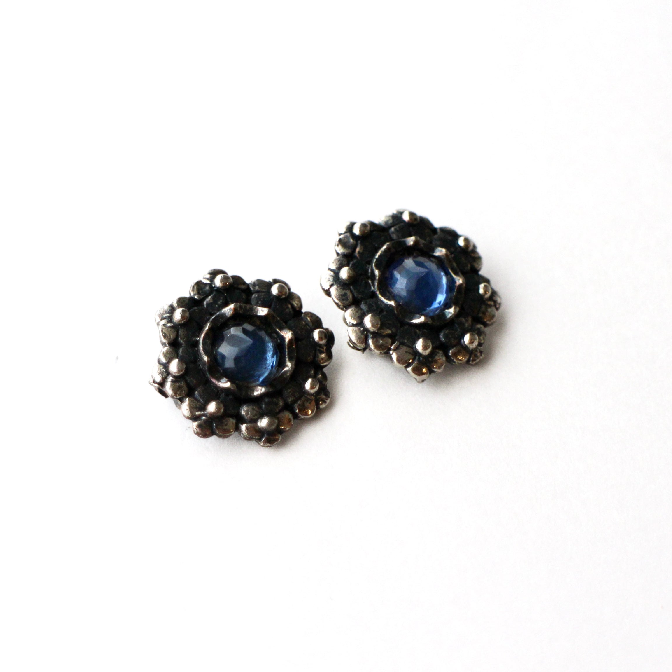 アンティークシルバーメタルフラワー*ブルーカットガラス*イヤリング