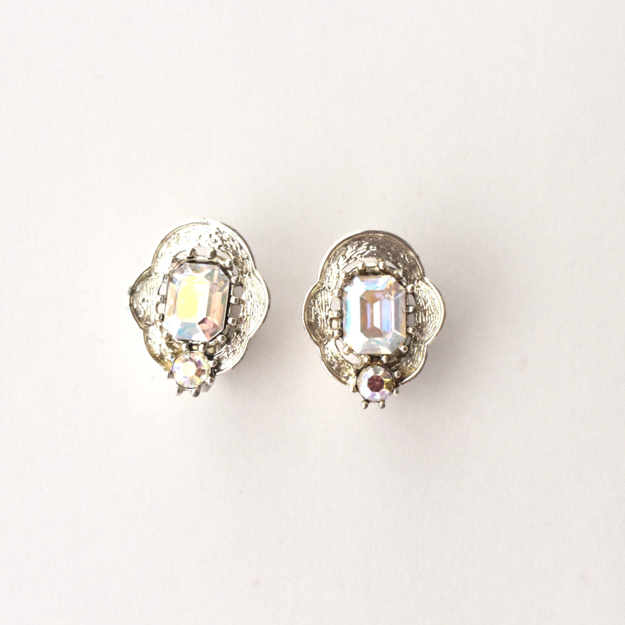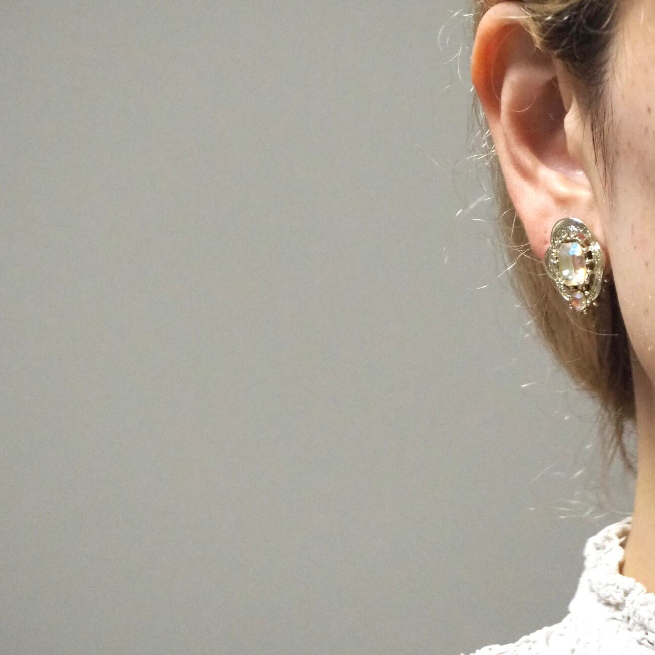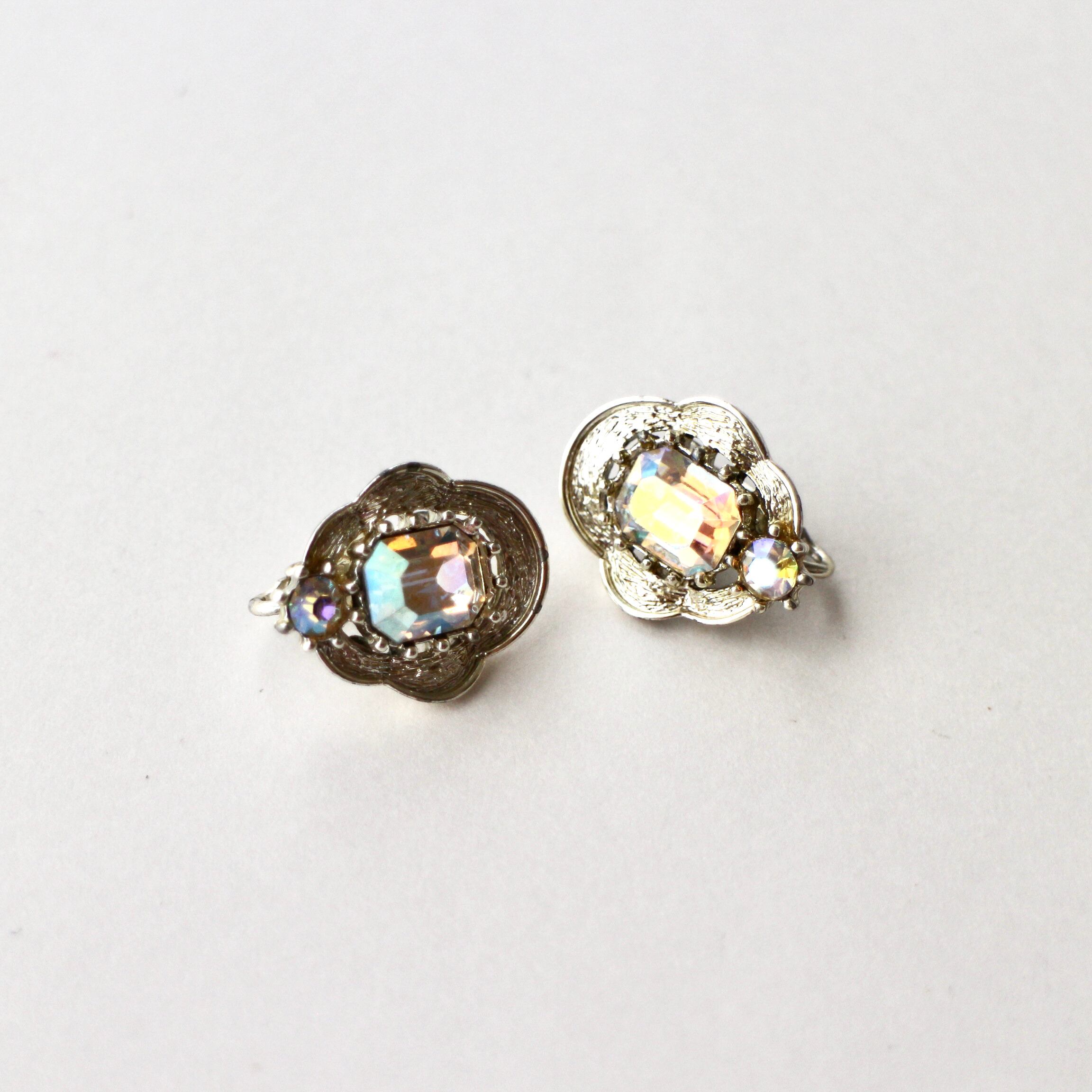 Jewelcraft*オーロラガラス*マットメタルフレーム*ヴィンテージイヤリング