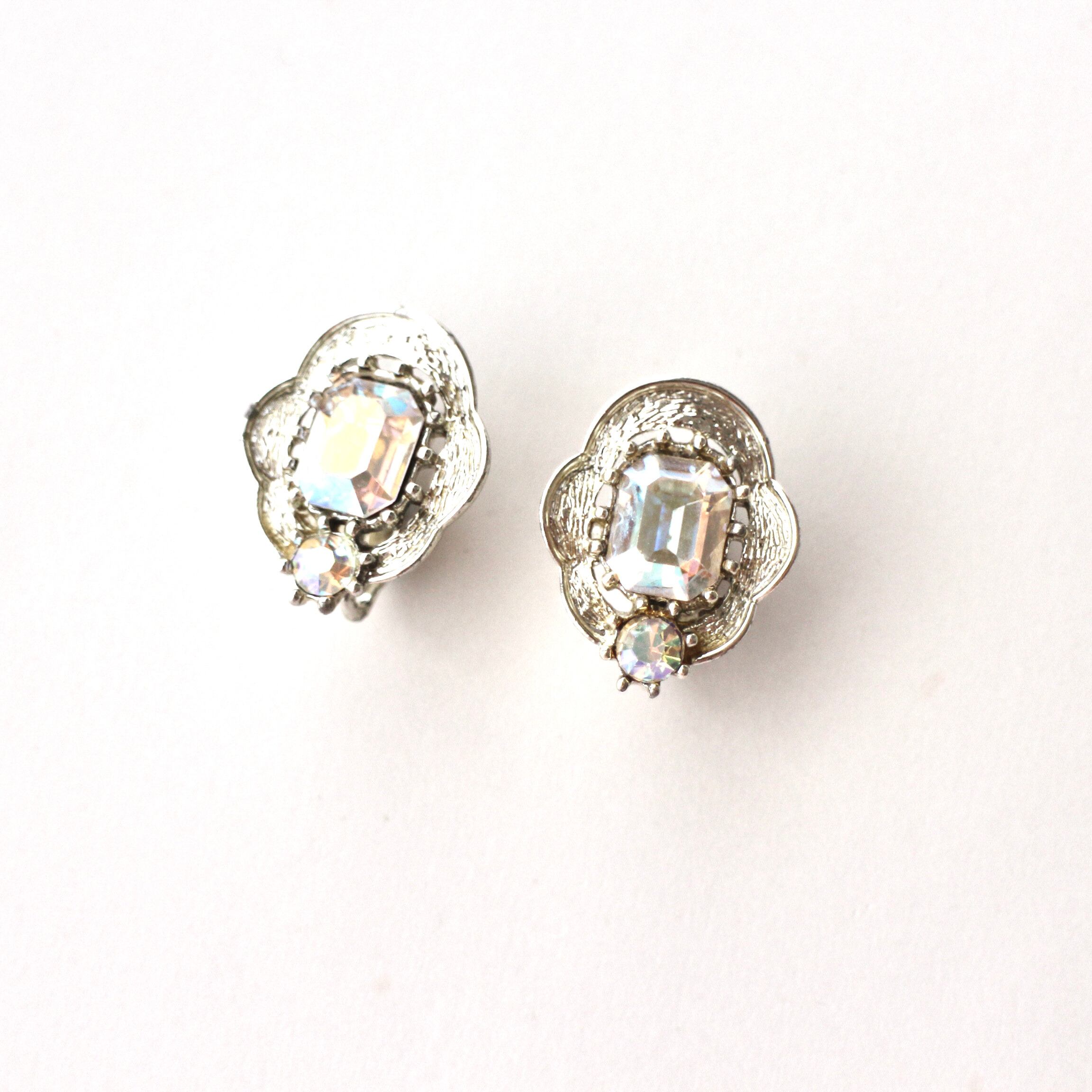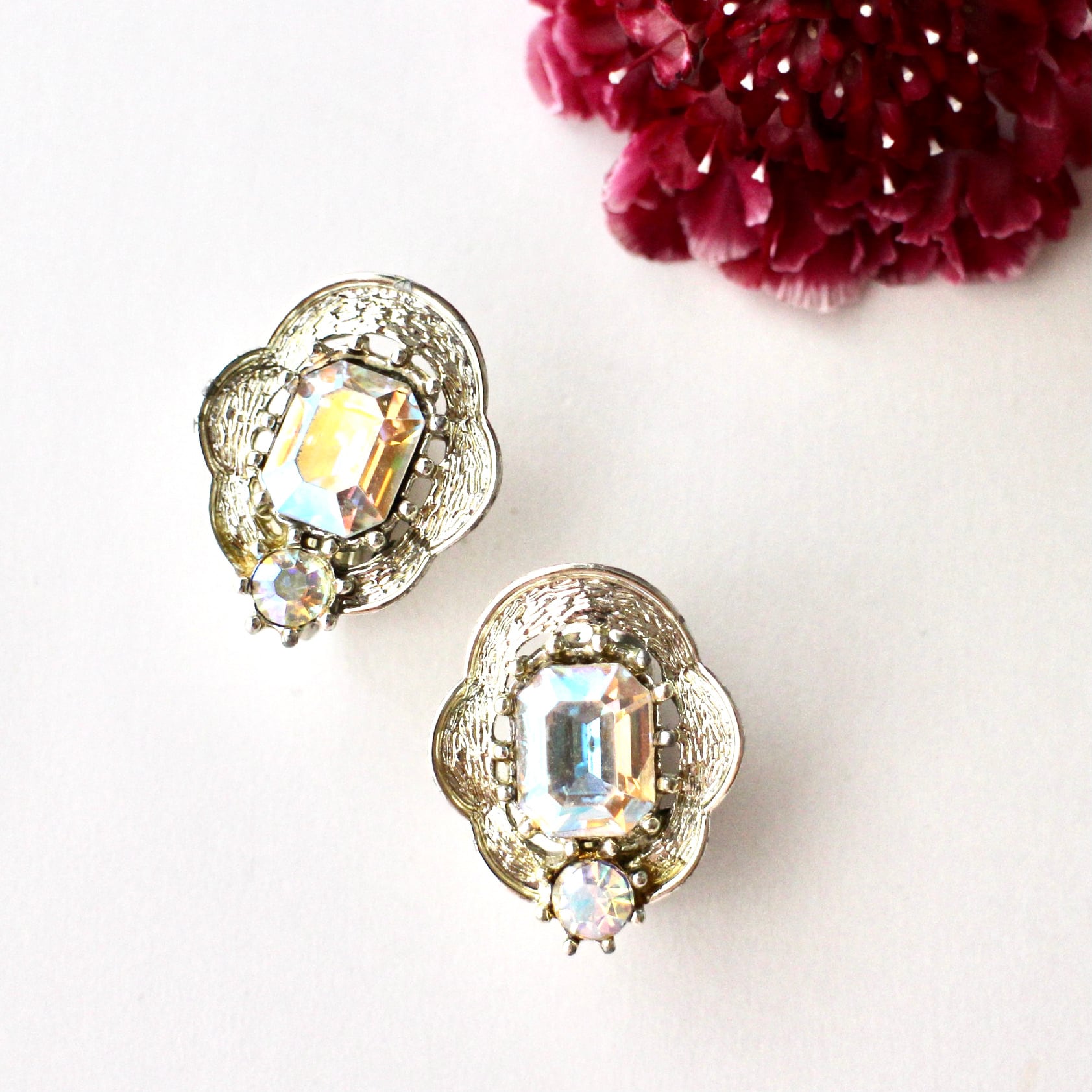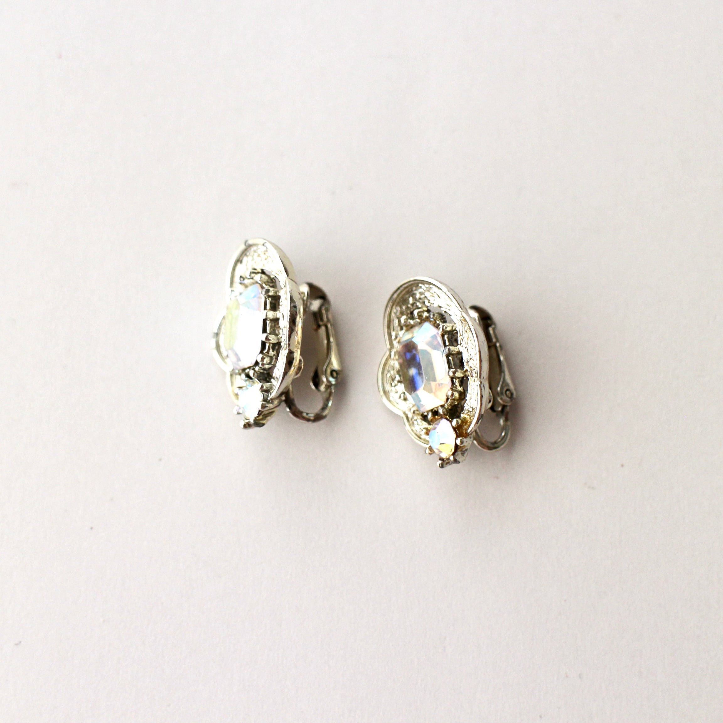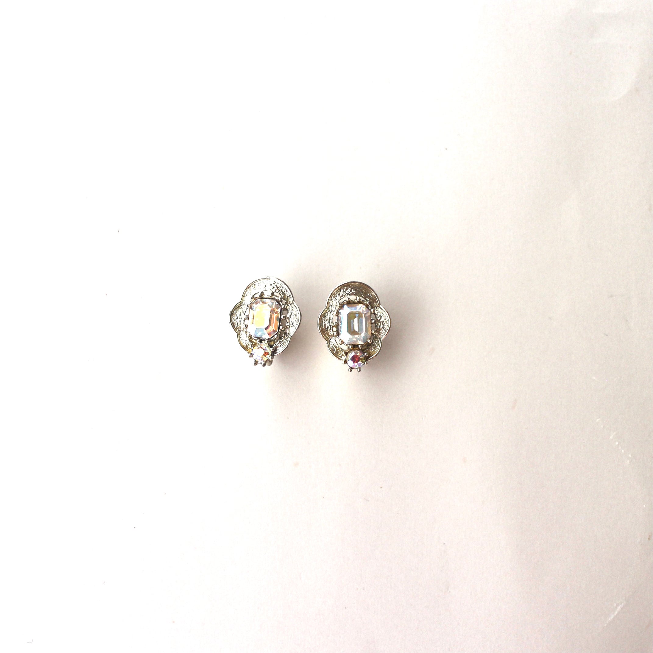 Jewelcraft*オーロラガラス*マットメタルフレーム*ヴィンテージイヤリング