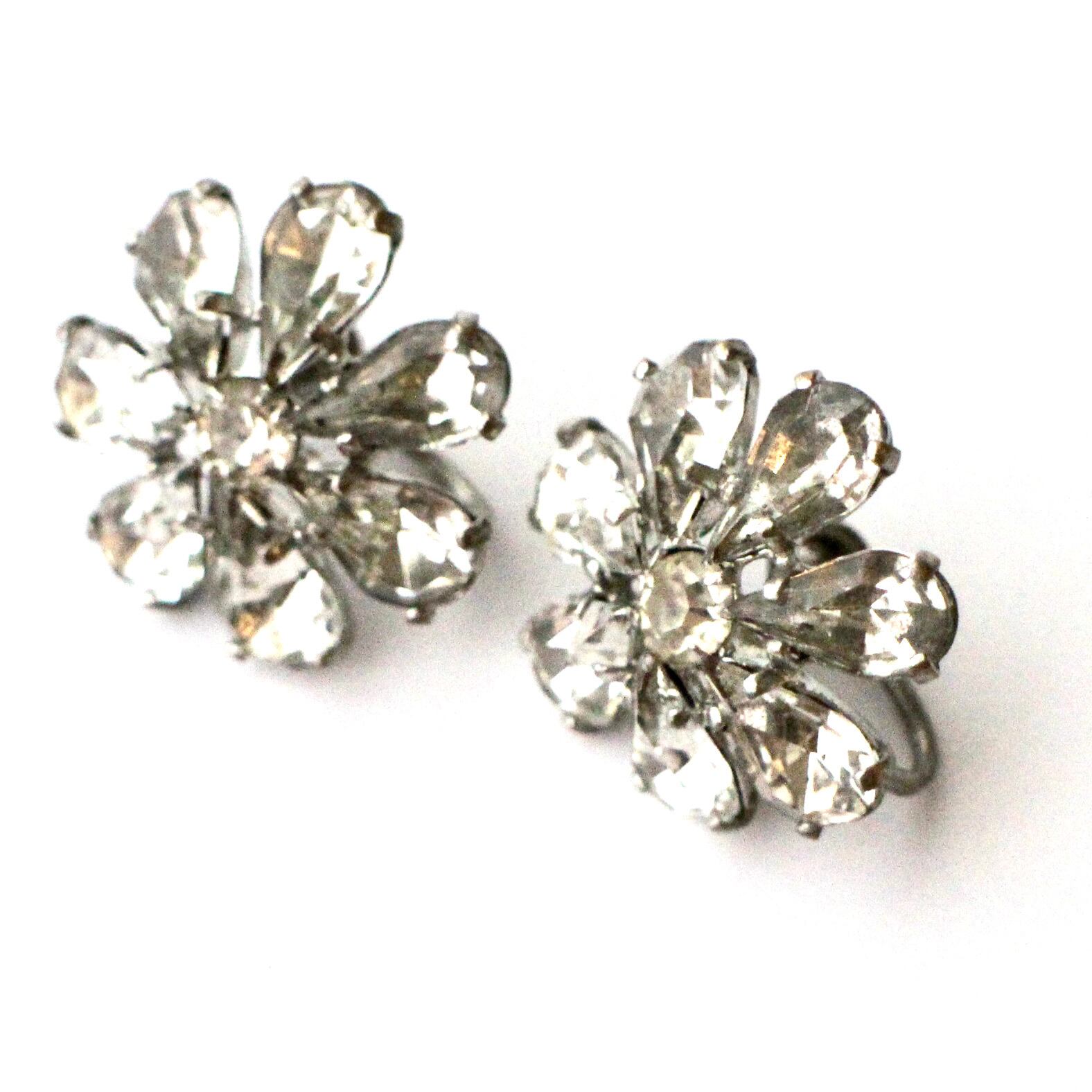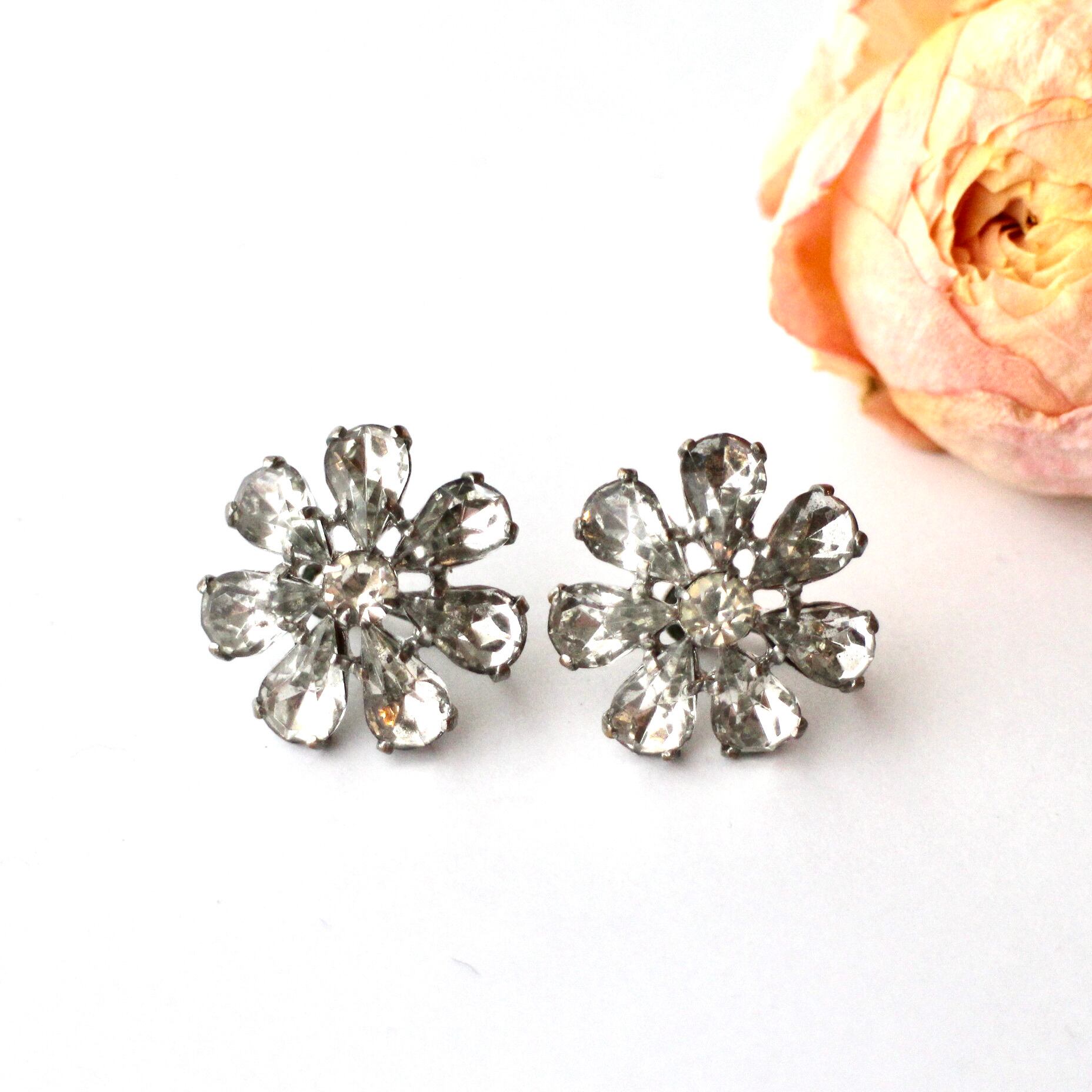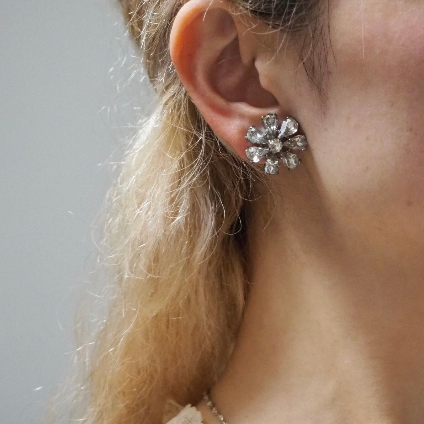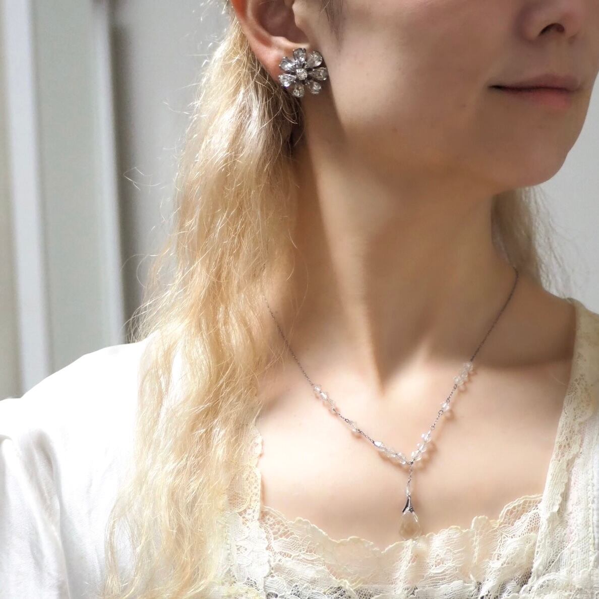 ドロップクリアビジュー*フラワーモチーフ*ヴィンテージイヤリング