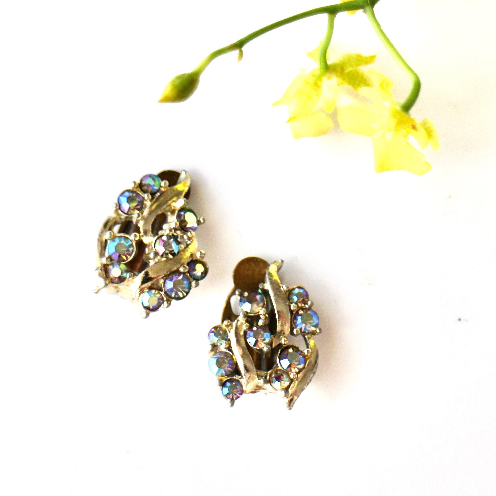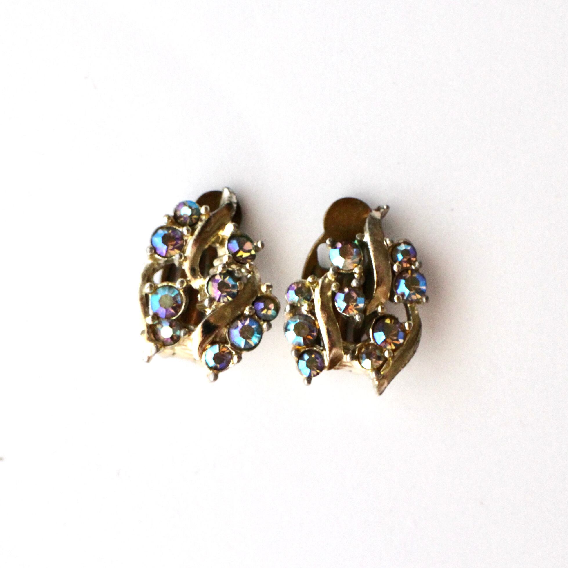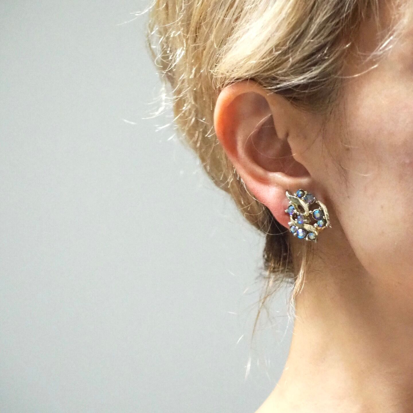 オーロラブルー*ゴールドメタル*ヴィンテージイヤリング