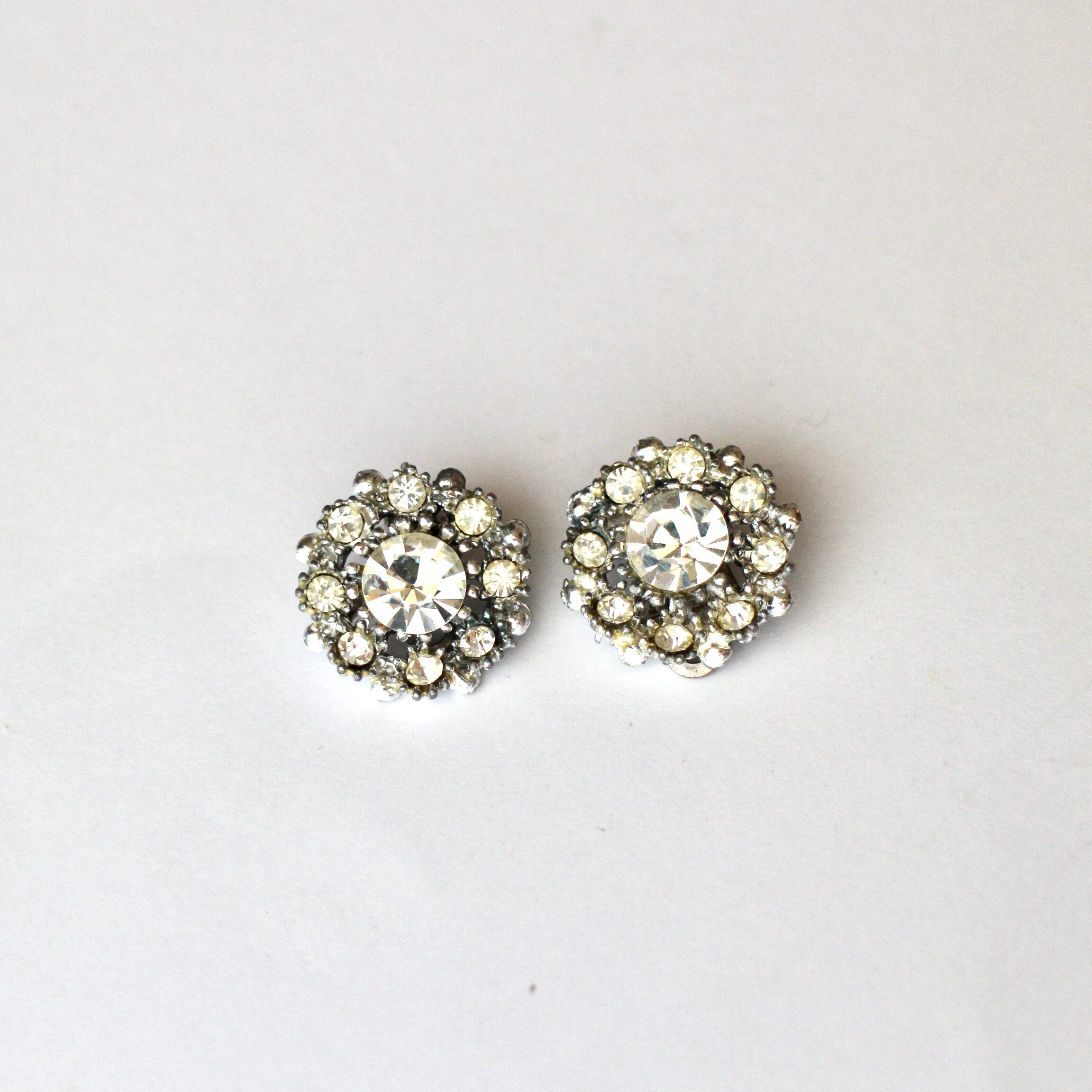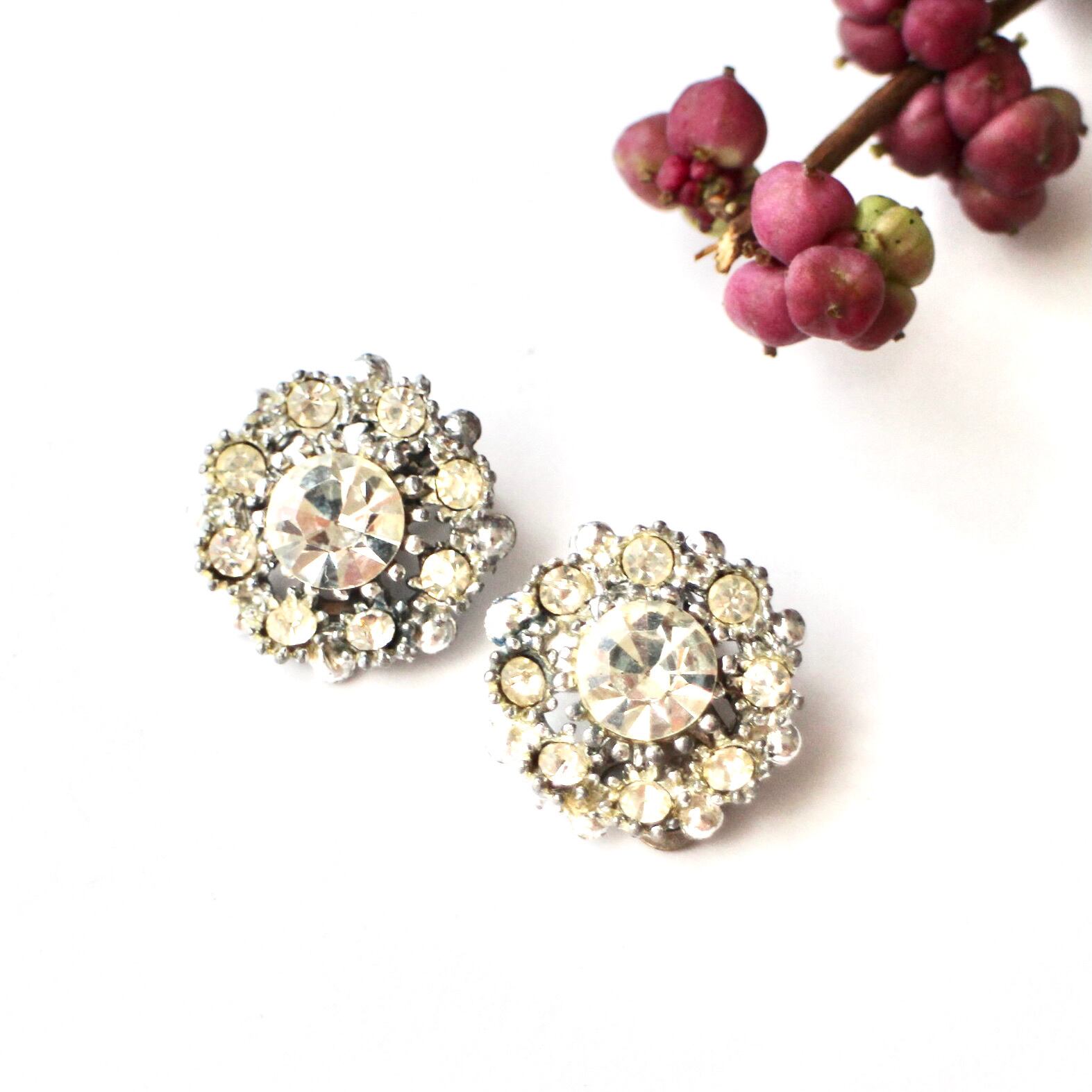 クリアビジュー*ラウンドフワラー*ヴィンテージイヤリング