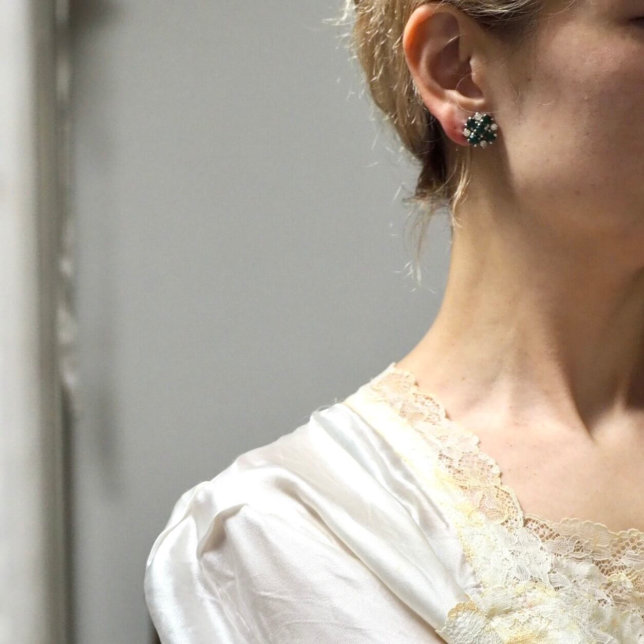 グリーン×クリア*クロススクエア*ヴィンテージイヤリング