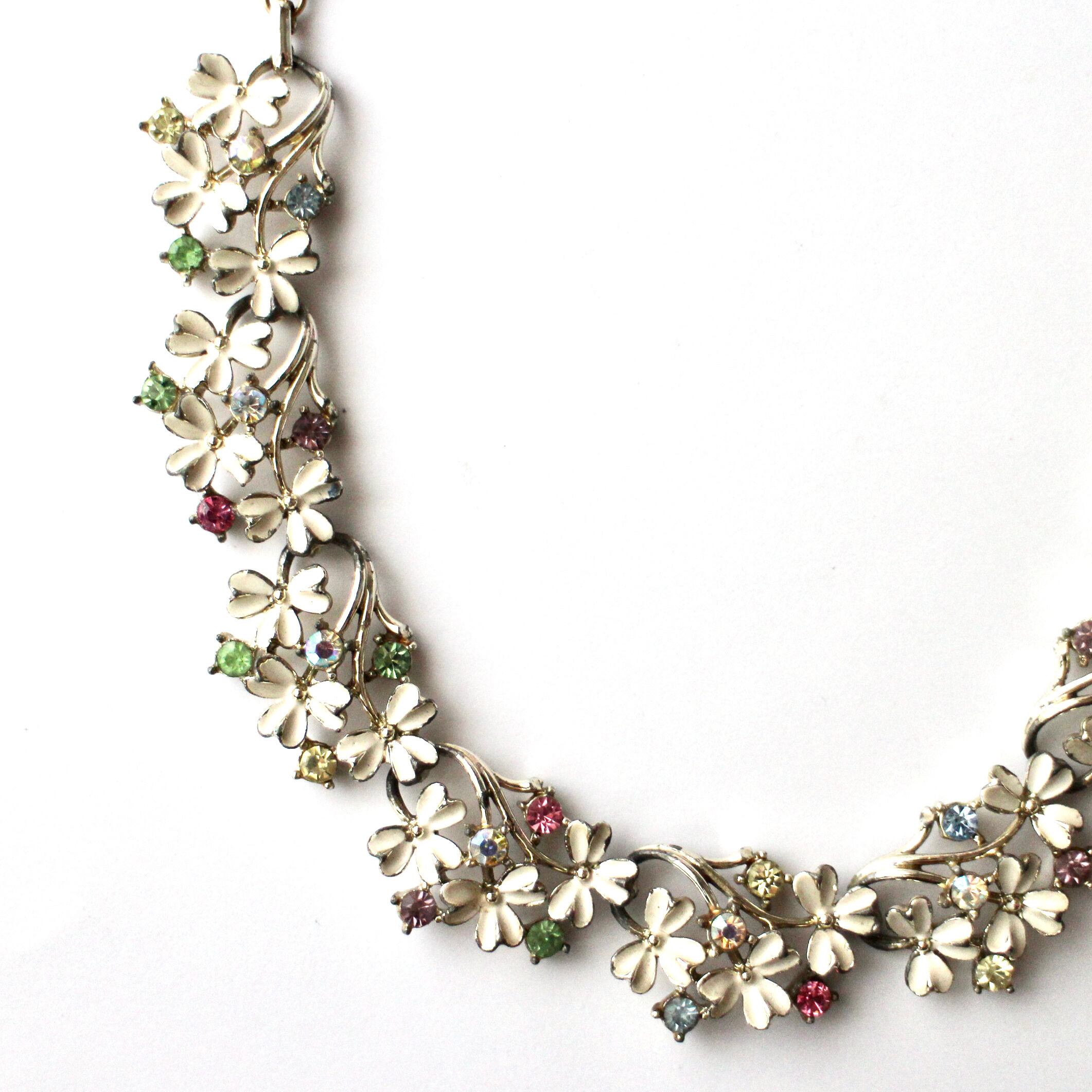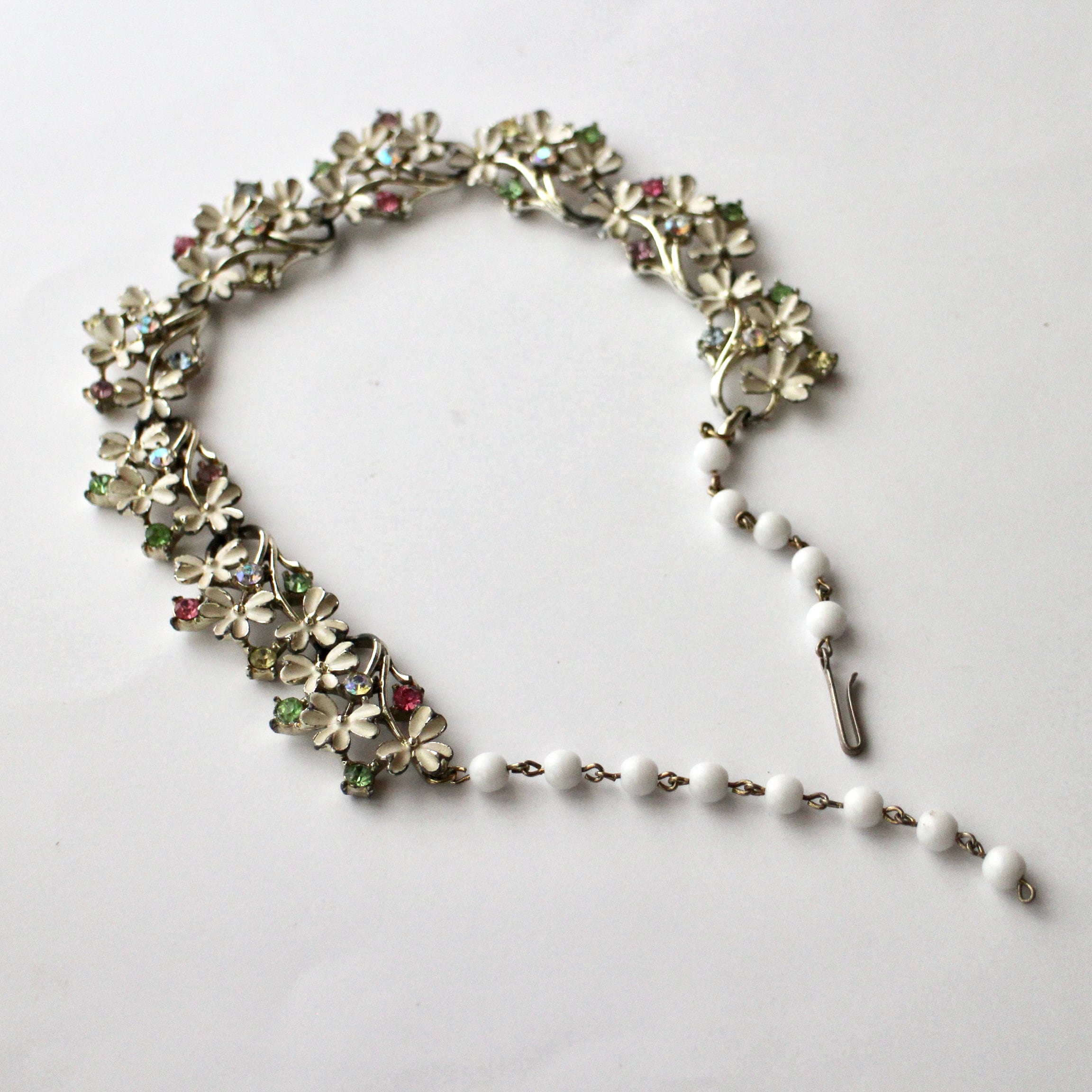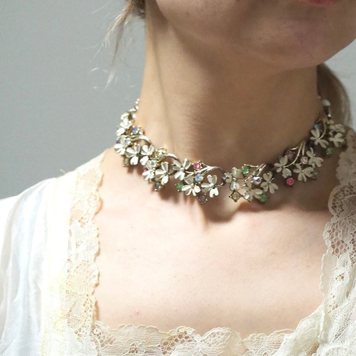 カラフルビジュー*ホワイトフラワー*ヴィンテージネックレス