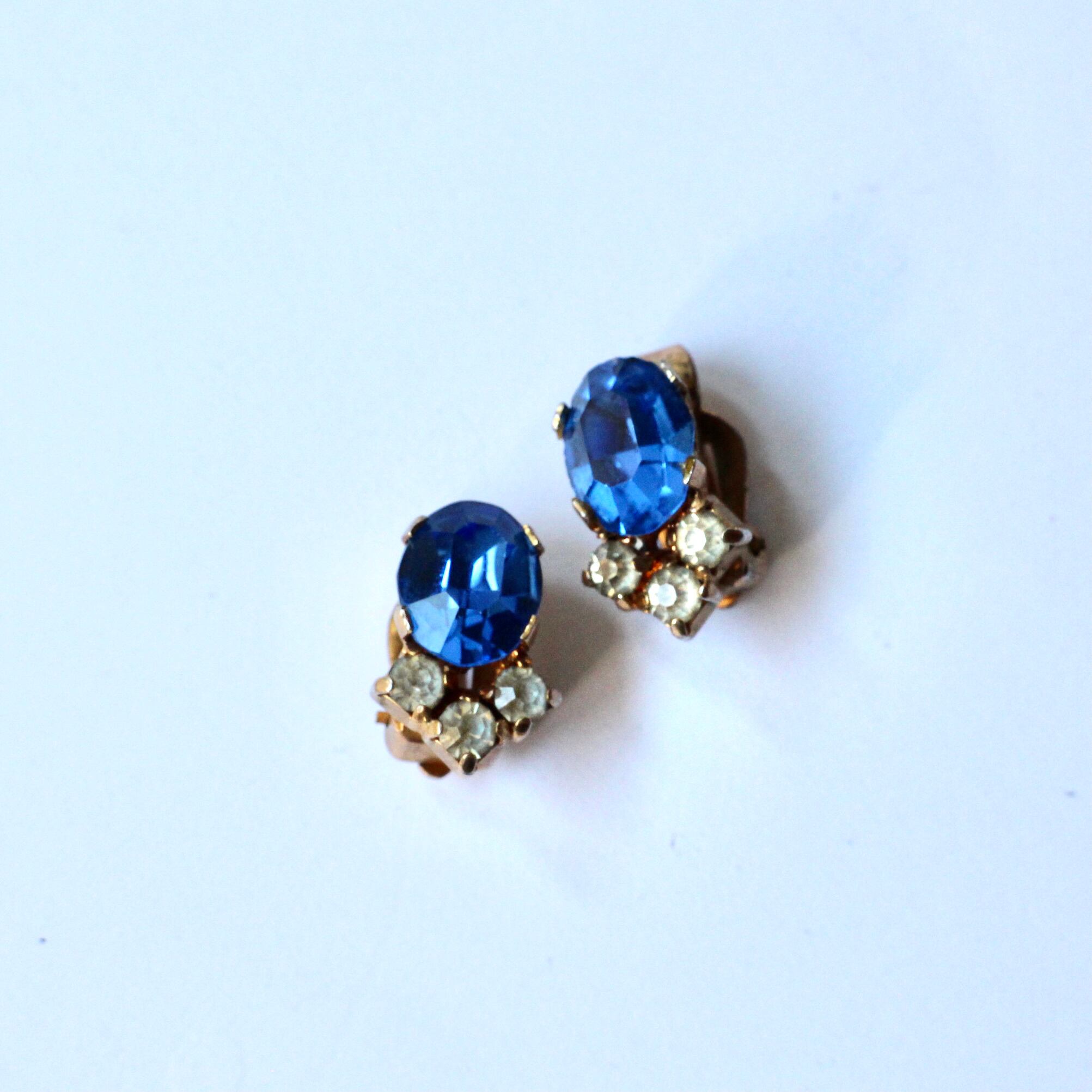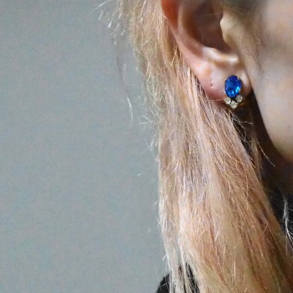 ブルー×クリア*クラシックオーバル*ヴィンテージイヤリング