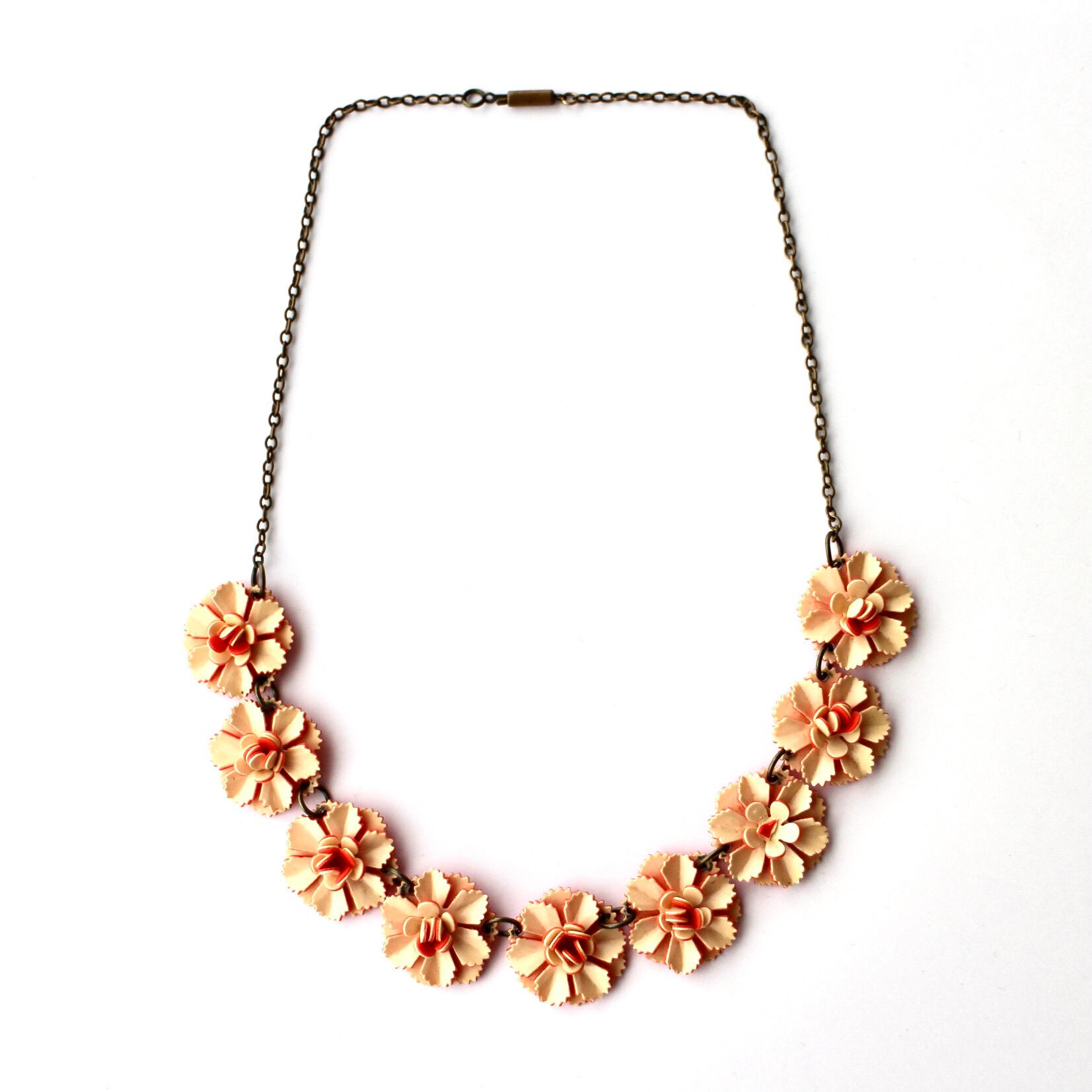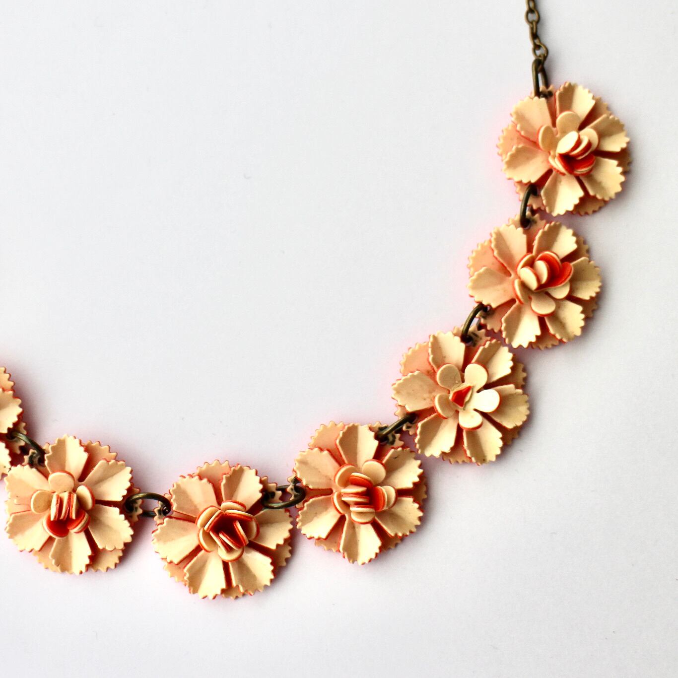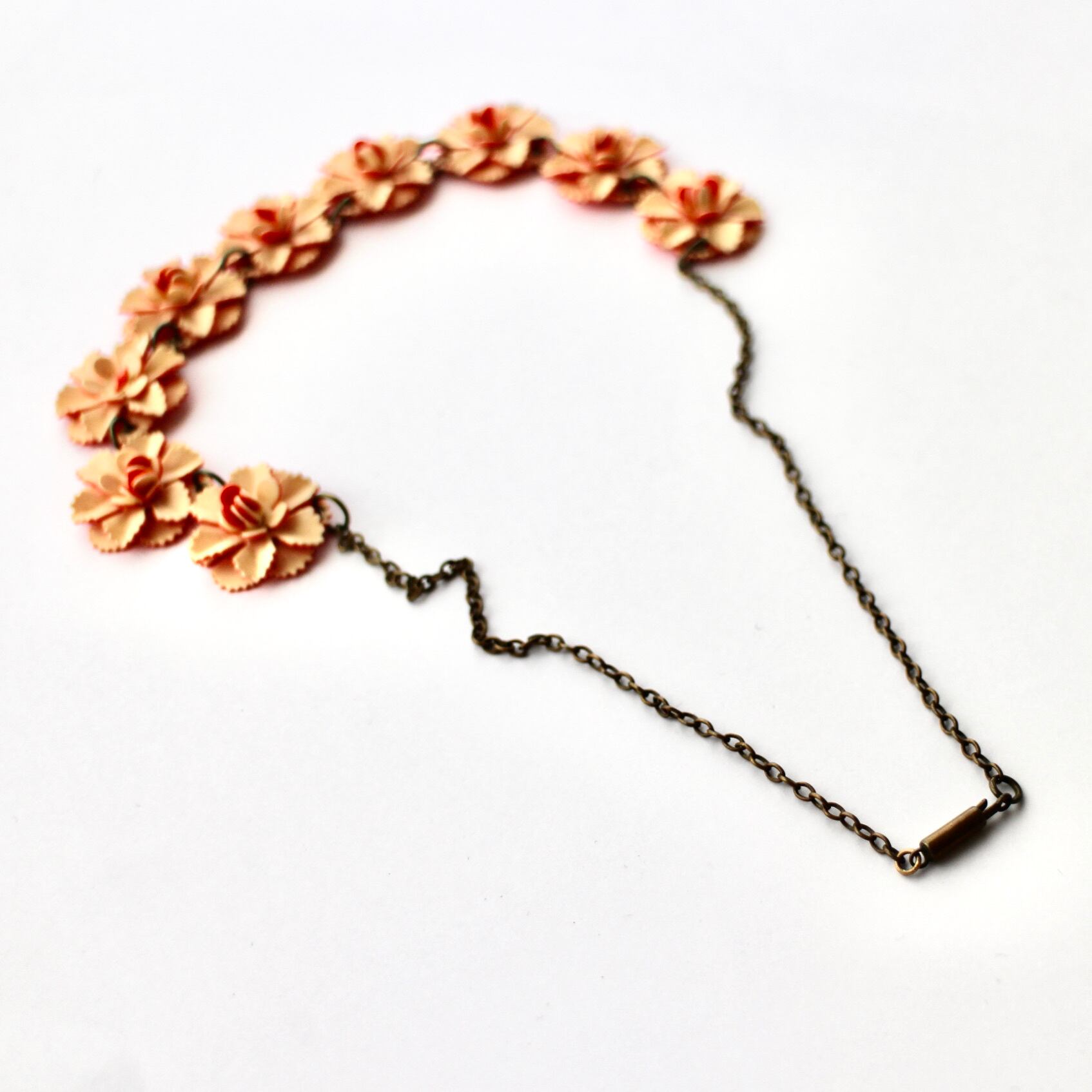 お洒落な配色のお花たちが連なったヴィンテージネックレス。